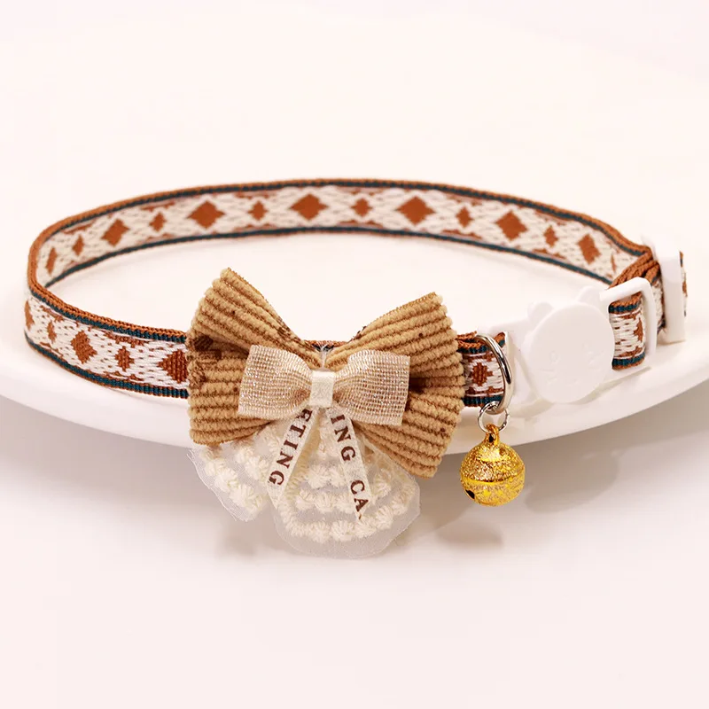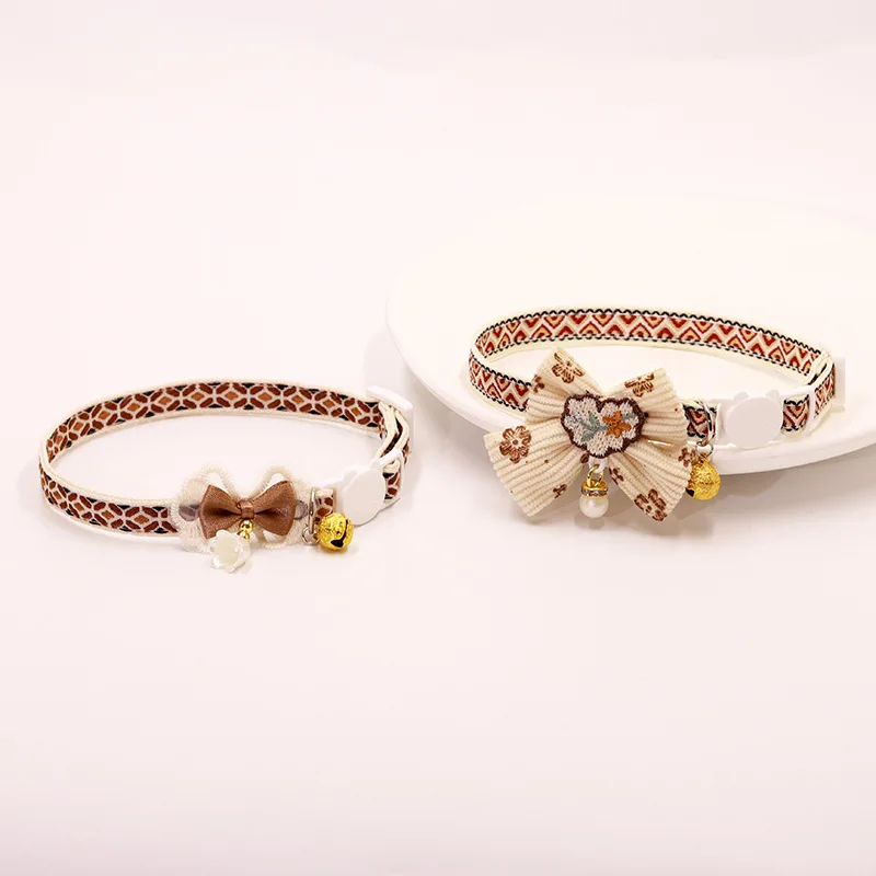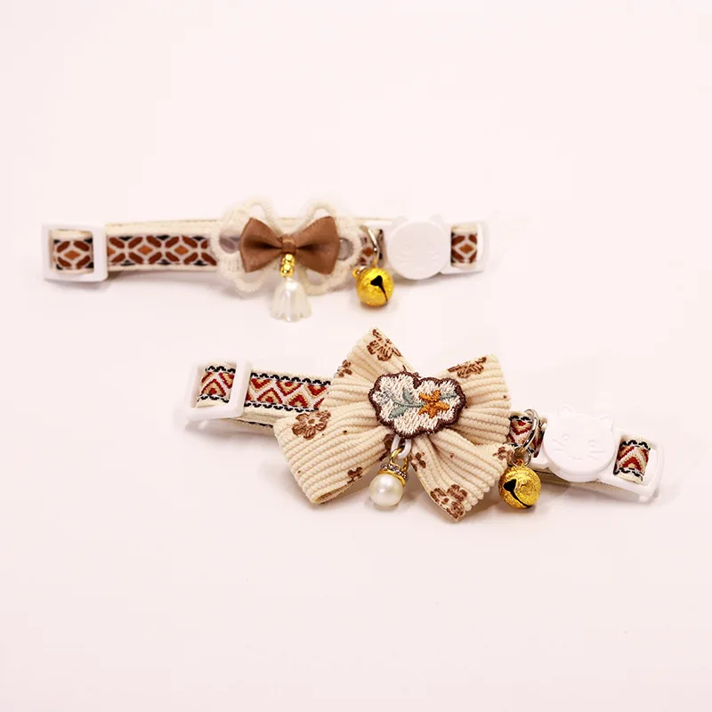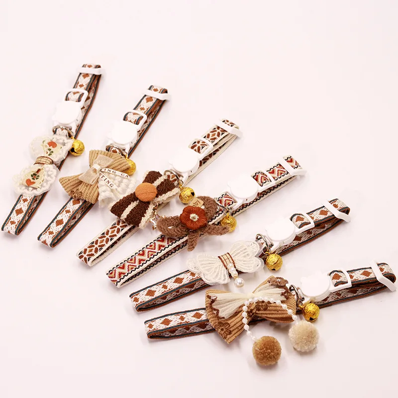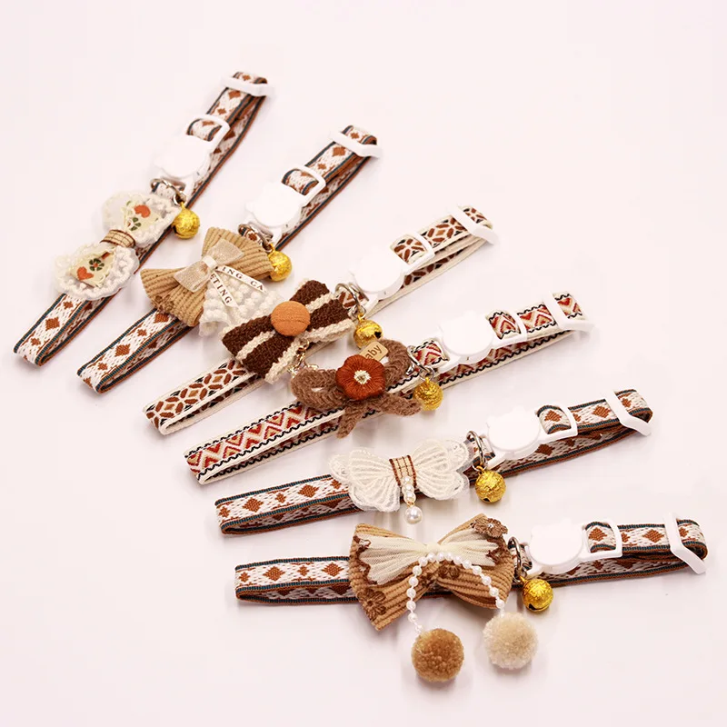Collar seguro para gatos con campana, pajarita, cierre de seguridad desmontable, accesorios para mascotas, Collar de encaje para gatitos, gatos, cachorros, perros pequeños