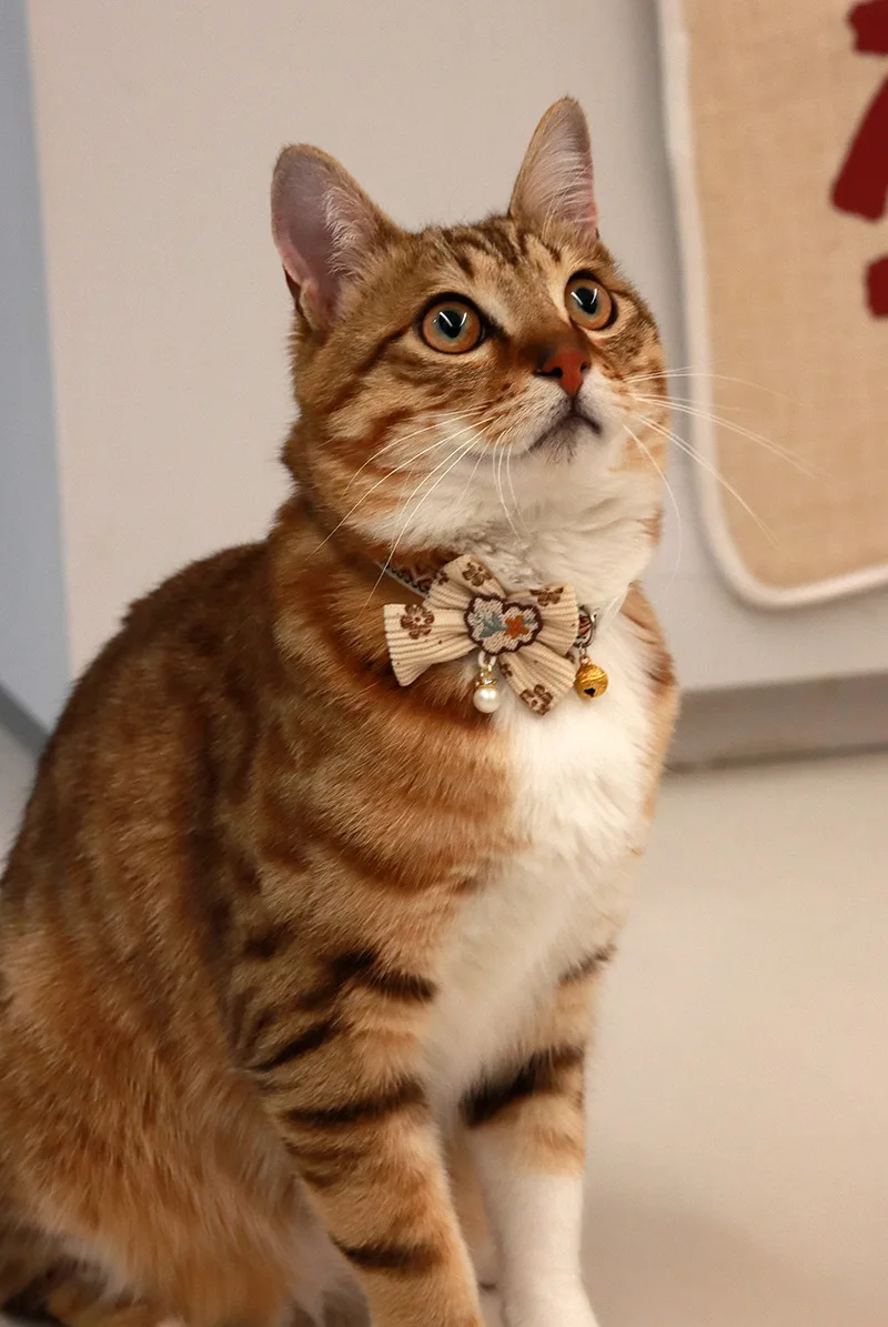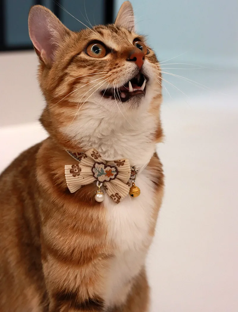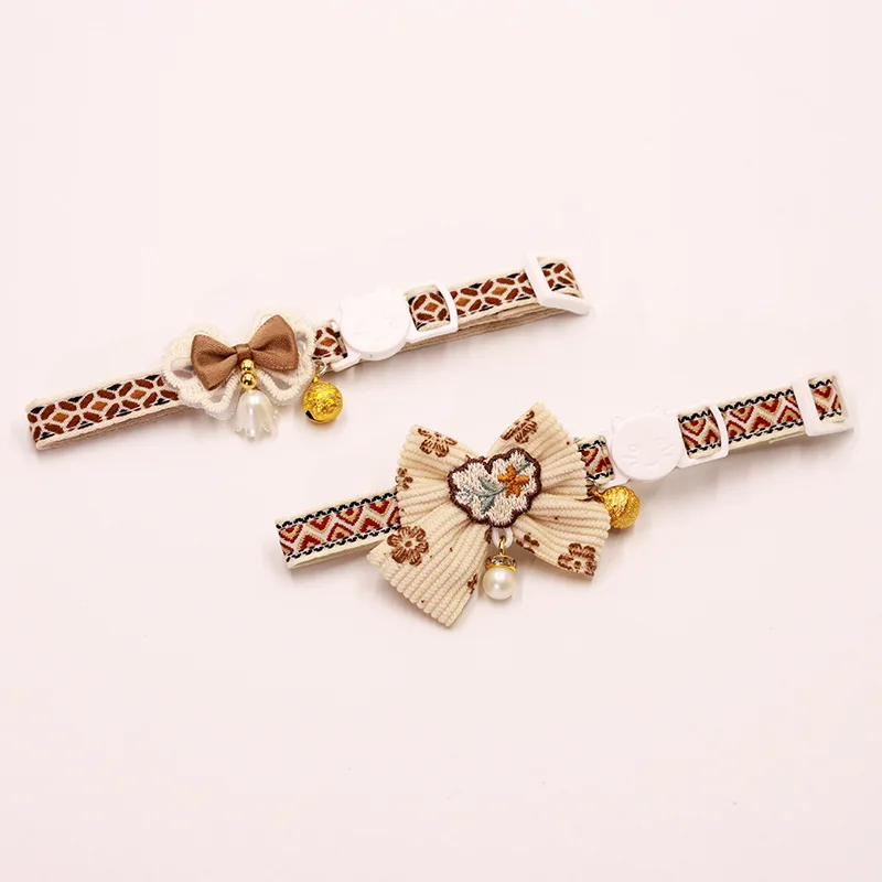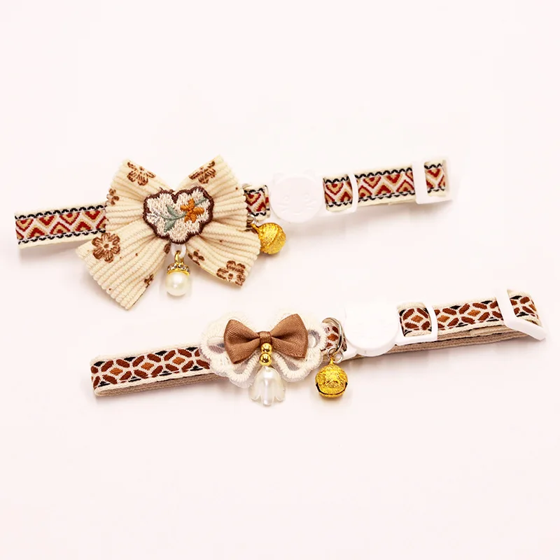 Collar seguro para gatos con campana, pajarita, cierre de seguridad desmontable, accesorios para mascotas, Collar de encaje para gatitos, gatos, cachorros, perros pequeños