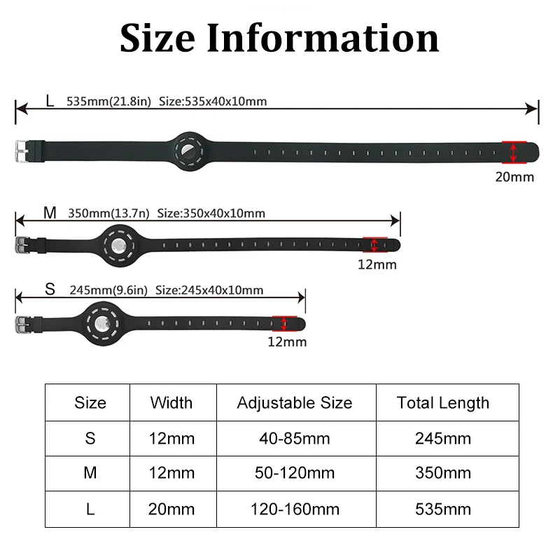 [Para perros pequeños, medianos y gatos] La longitud del collar de perro airtag es de 21,3 pulgadas, pero con los múltiples agujeros en la correa, puede ajustarlo de 9 a 19,5 pulgadas para adaptarse a sus mascotas. Le recomendamos que lo use en gatos, perros pequeños y perros medianos.
