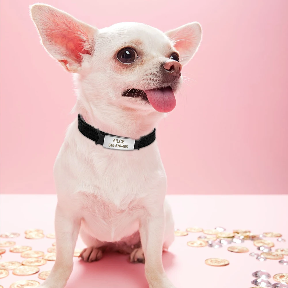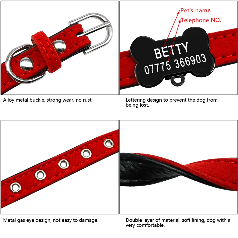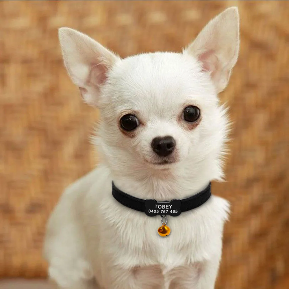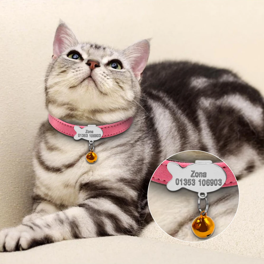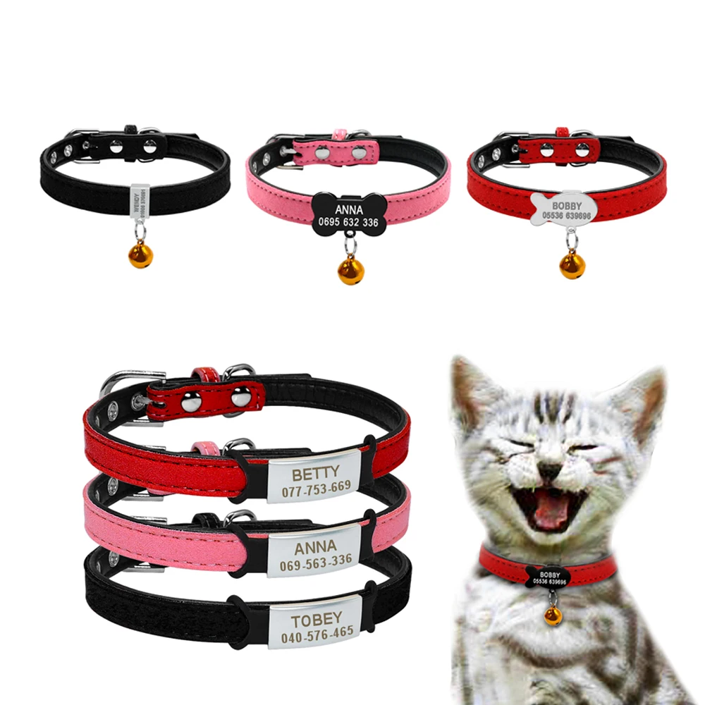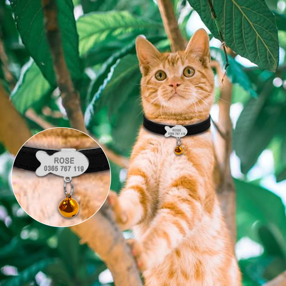 Nombre: Collar suave para perros y gatos con campana, collares de identificación de nombre de gato de seguridad personalizados y juego de etiquetas, accesorios para perros y gatos, collares para cachorros pequeños
