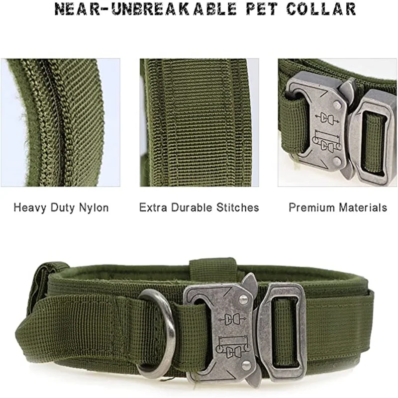 Juego de correa de Collar táctico militar para perro, Collar duradero para mascota, correa retráctil, accesorios de entrenamiento de pastor alemán para perros medianos y grandes
