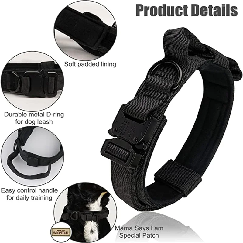 【Diseño práctico】--El collar militar para perros tiene un mango de control especial, que puede ayudarte a controlar bien a tu perro, ideal para perros medianos y grandes, especialmente para adiestrar, patrullar, caminar y cazar perros.