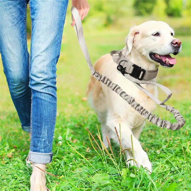 Collar táctico militar fuerte para perros, correa elástica duradera de nailon para entrenamiento de mascotas con mango, perros grandes, Bulldog francés