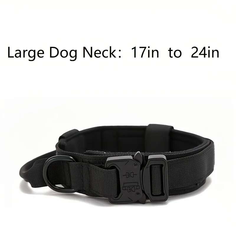 Collar táctico militar para perro, ajustable, nailon suave, entrenamiento al aire libre, K9, con mango y Metal