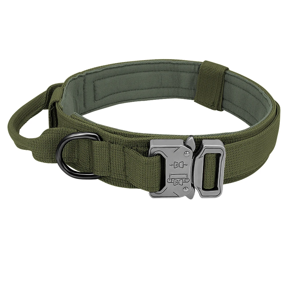1. Hecho de material de nailon de alta calidad y artesanía exquisita, este collar táctico para perros es grueso, resistente, resistente al desgarro y duradero. Equipado con anillo en D, cadena de perro fácil de conectar, mango cómodo, muy práctico