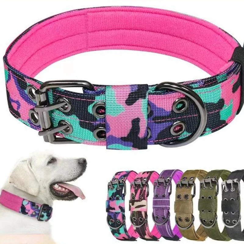 Collar táctico de nailon para perros grandes, ajustable con cierre de hebilla de 5 niveles, Collar resistente para mascotas, punto de fijación de correa