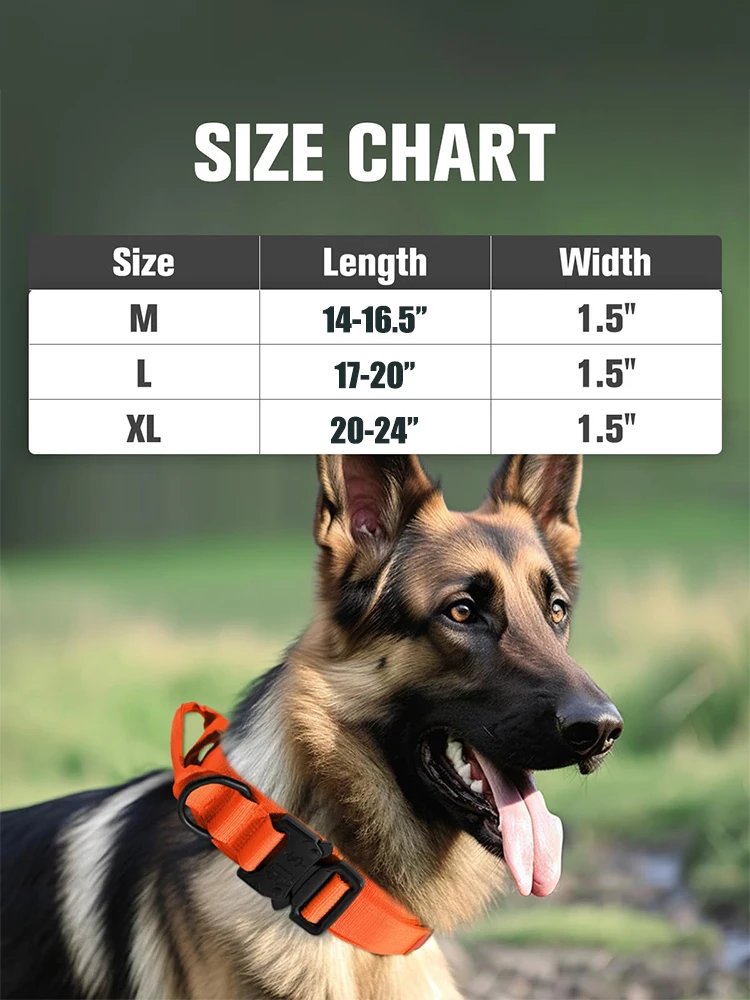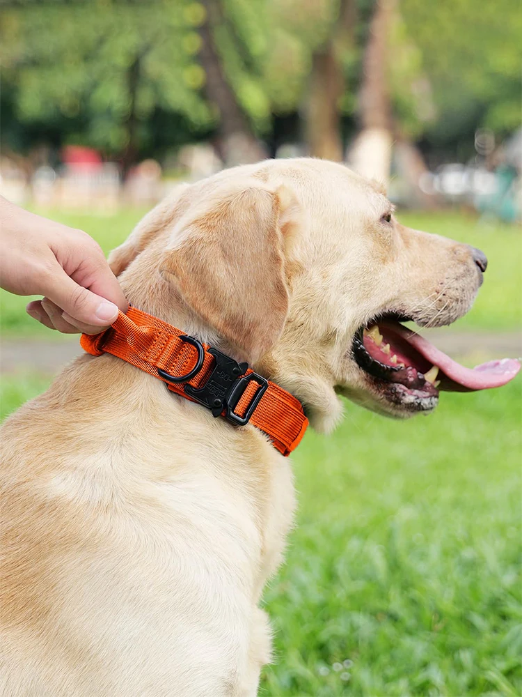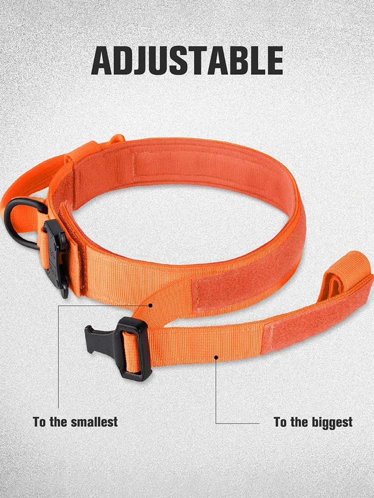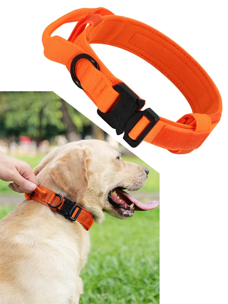 Collar táctico naranja con mango para perro, hebilla de Metal, conjunto de Collar y correa militar, collares tácticos ajustables para perros grandes