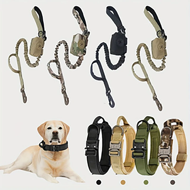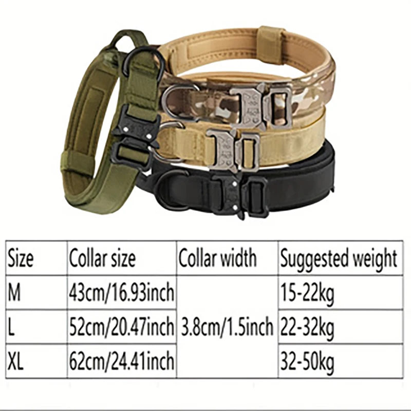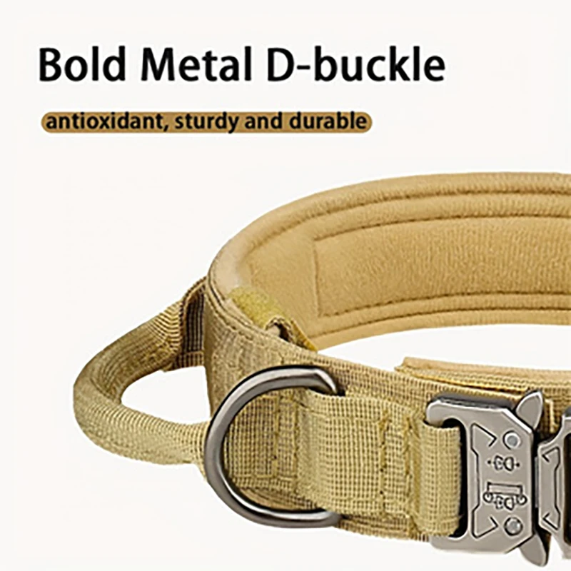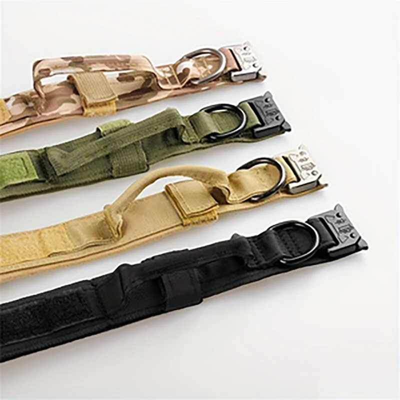 Collar táctico para perro, Collar militar ajustable de nailon para perro con mango de Control y hebilla de Metal resistente para perros medianos y grandes