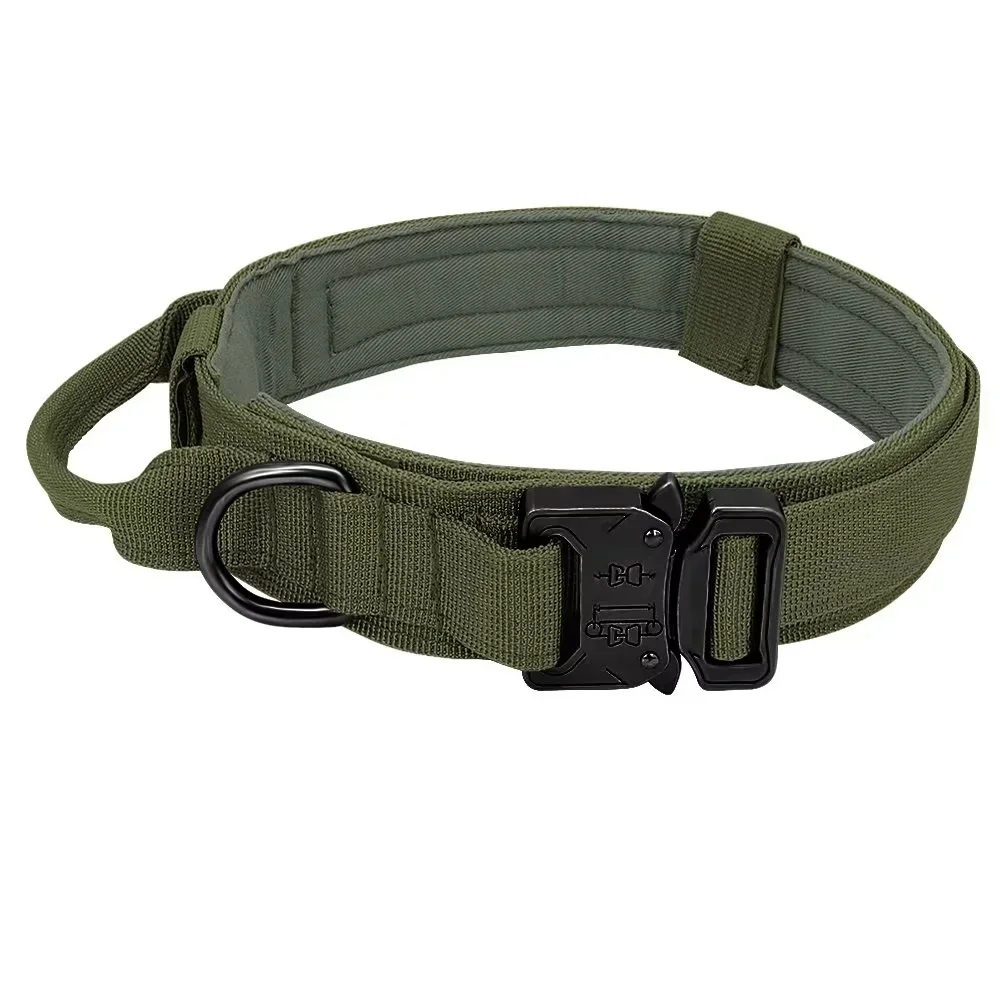 3. Con asa de control, anillo en D para correa de perro y superficie de velcro para fijar parches. Con el mango es fácil quitar a su perro del collar cuando pone a su perro con la correa.