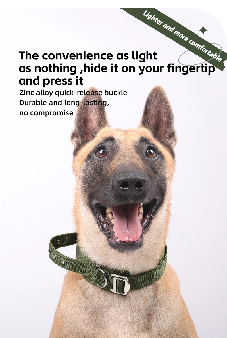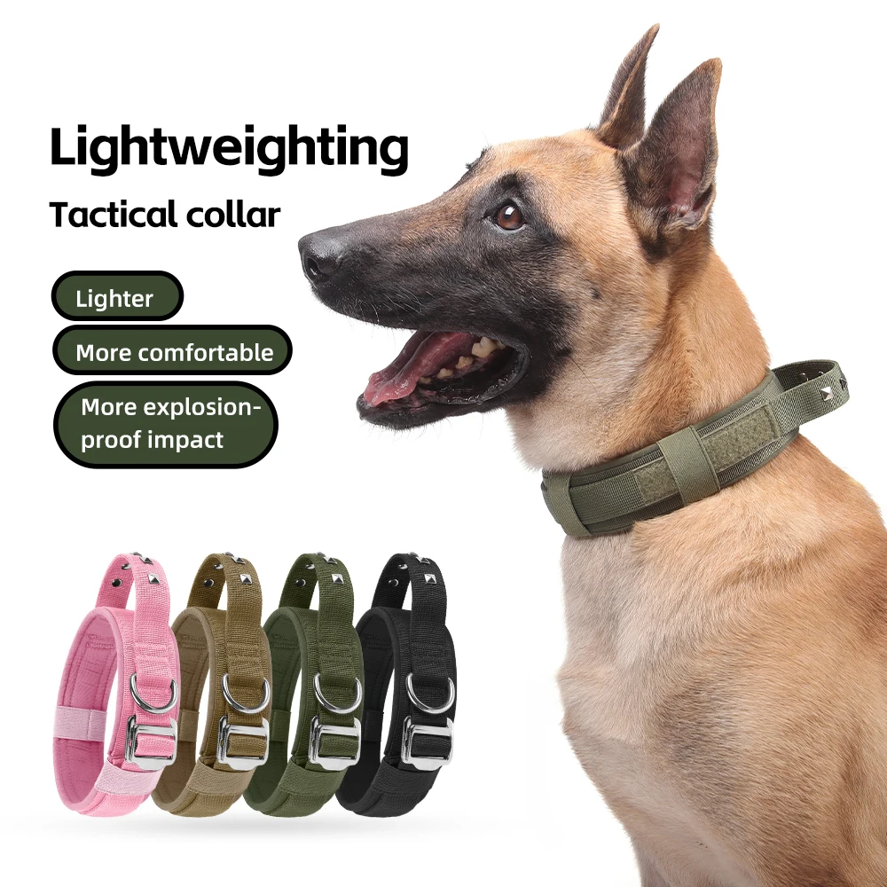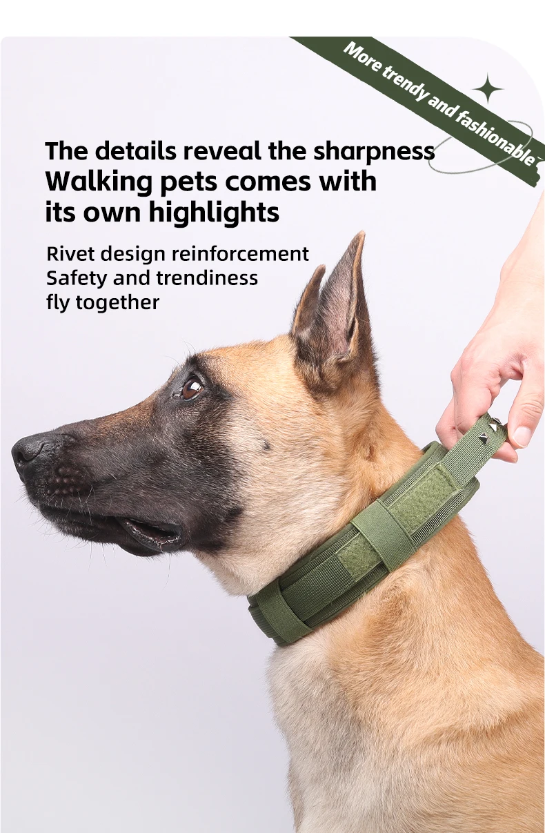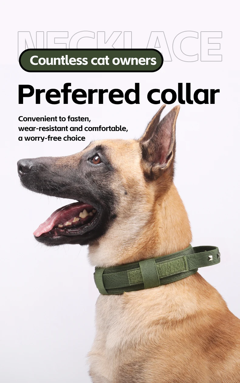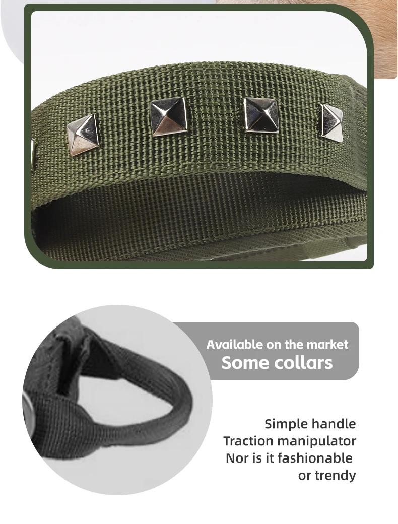 Collar táctico para perros de alta resistencia para razas grandes, juego de correa con tachuelas y anilla en D de Metal y mango, sin diseño de estrangulamiento