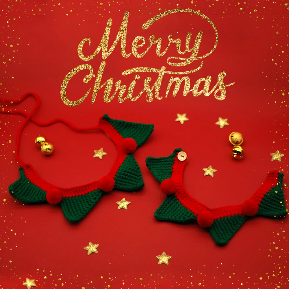 Collar tejido hecho a mano para mascotas, vacaciones navideñas, con campanas, accesorio festivo de ganchillo para decoración de perros pequeños y gatos