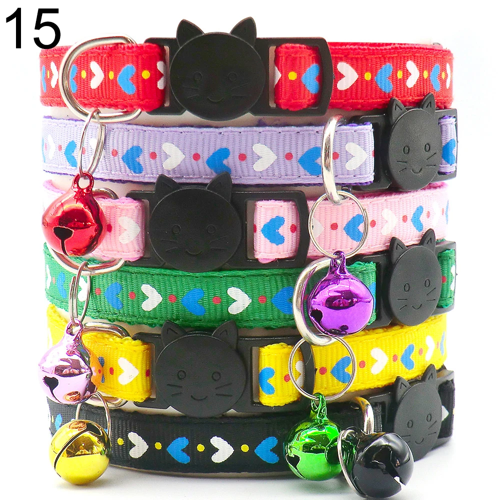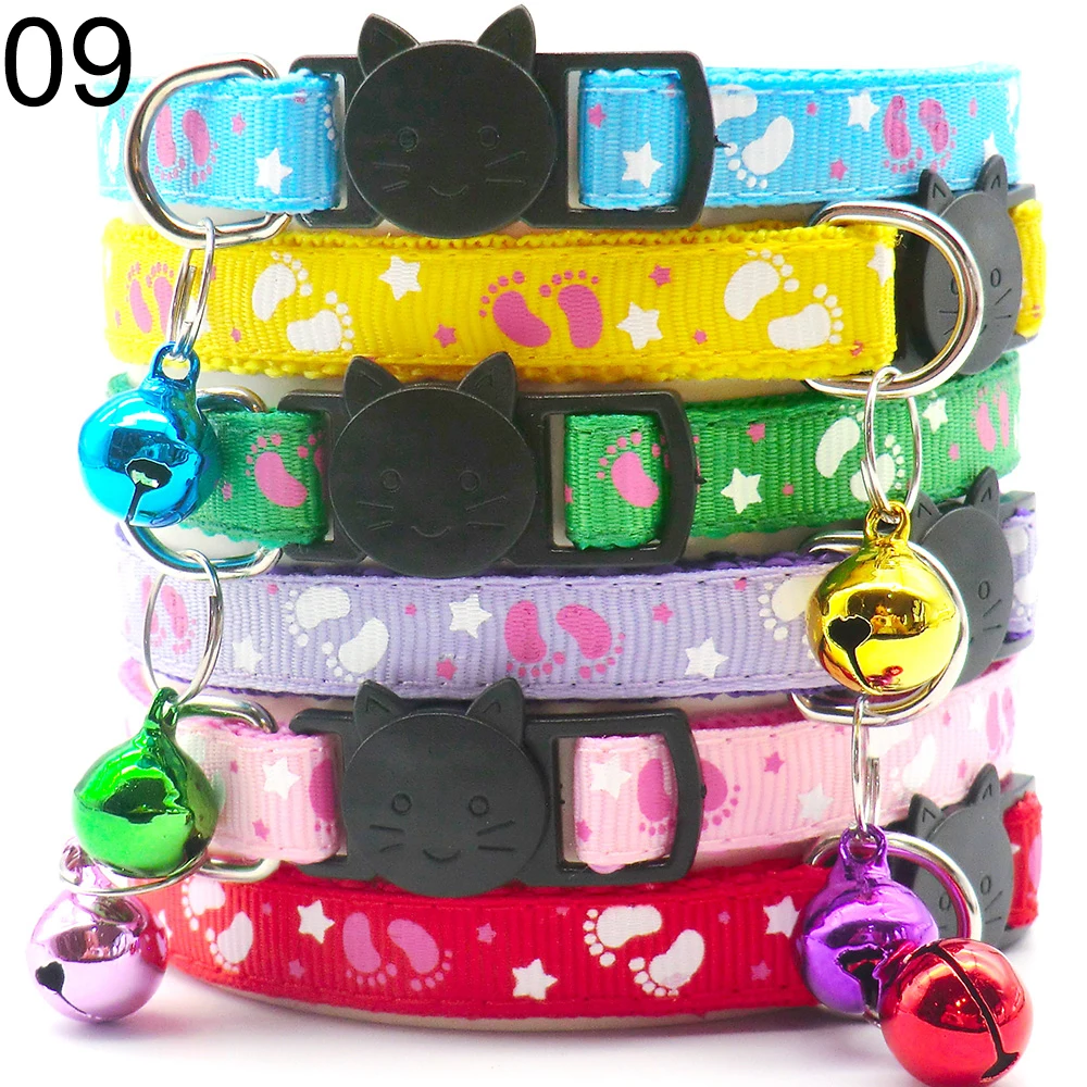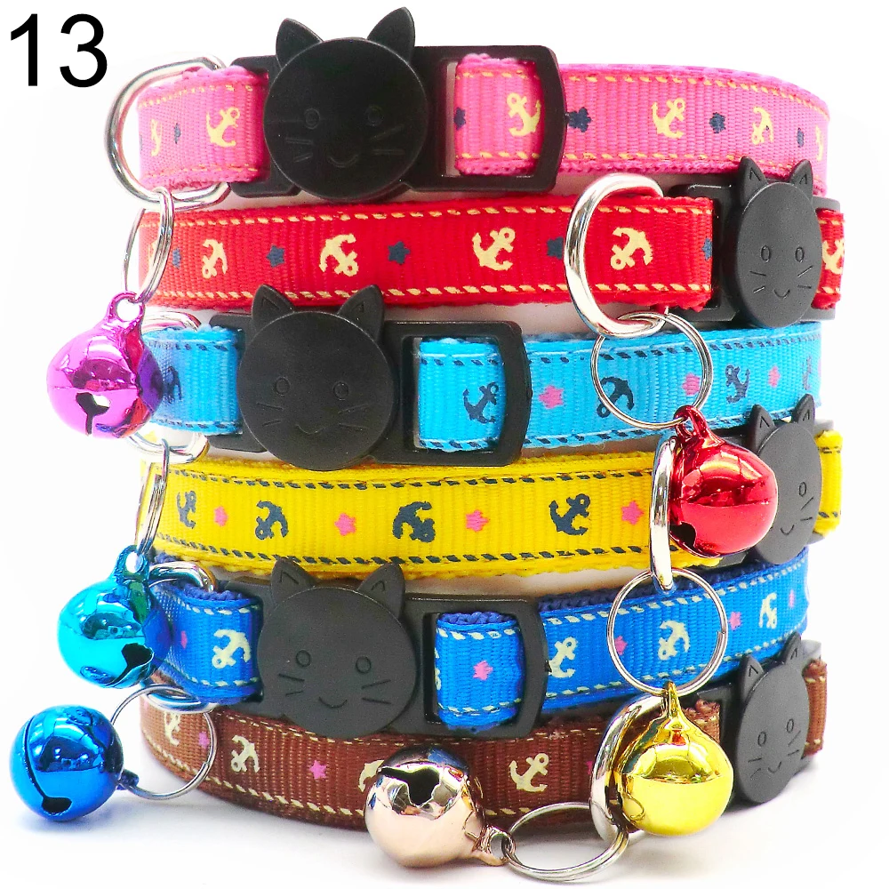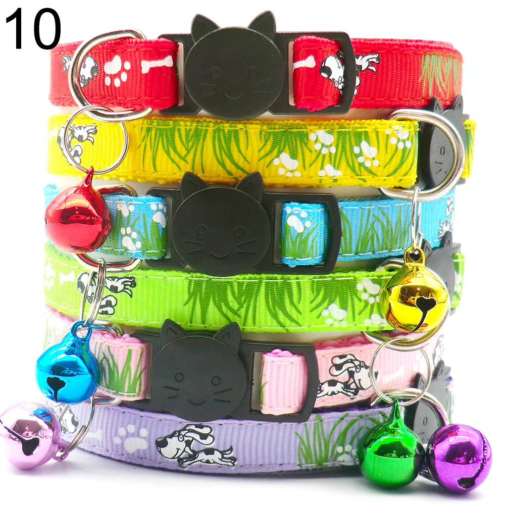 Cadena de perro mascota de Material de tela ajustable de 24 piezas al por mayor con campana gato cara botón banda para el cuello con campana moda cuello Halter