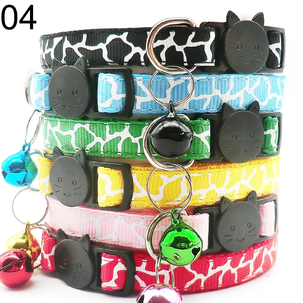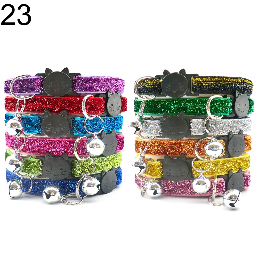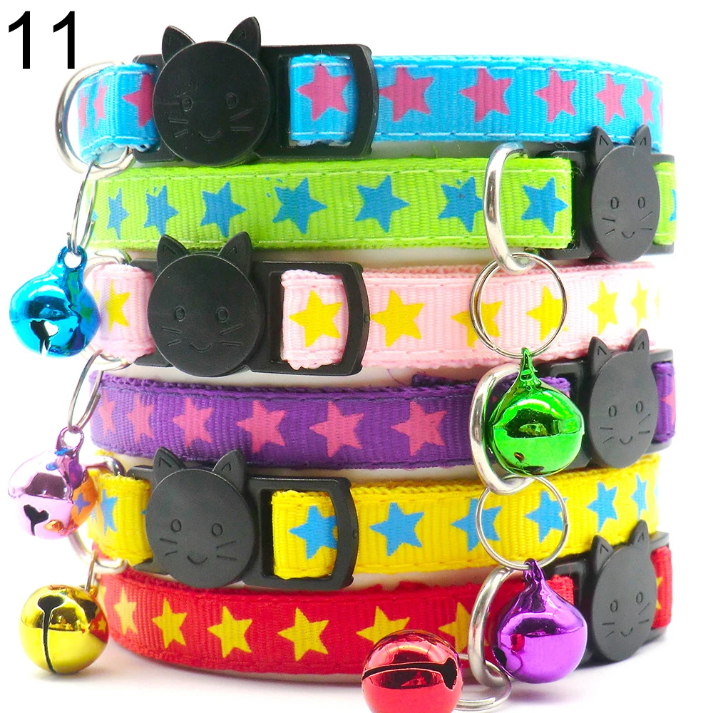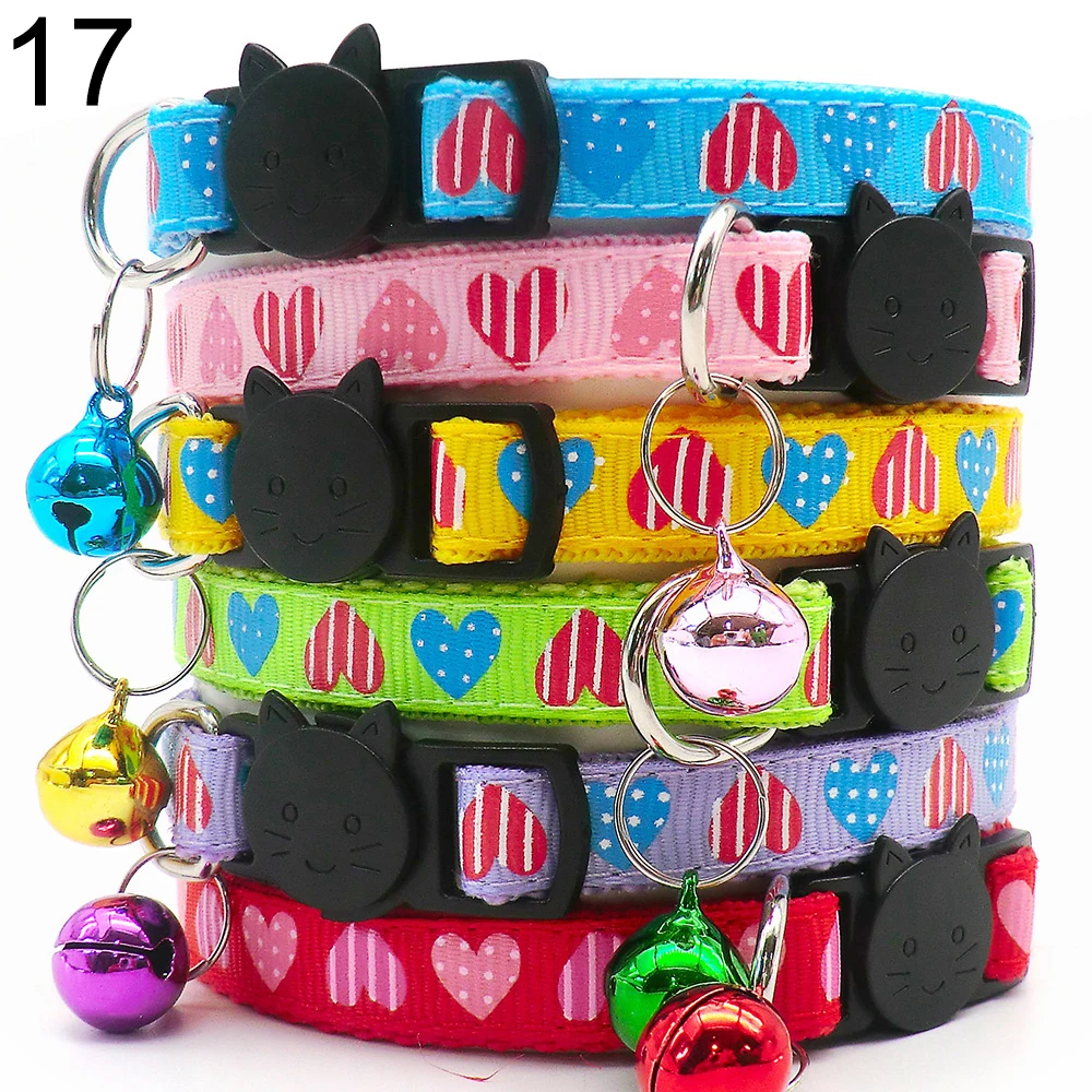 Cadena de perro mascota de Material de tela ajustable de 24 piezas al por mayor con campana gato cara botón banda para el cuello con campana moda cuello Halter