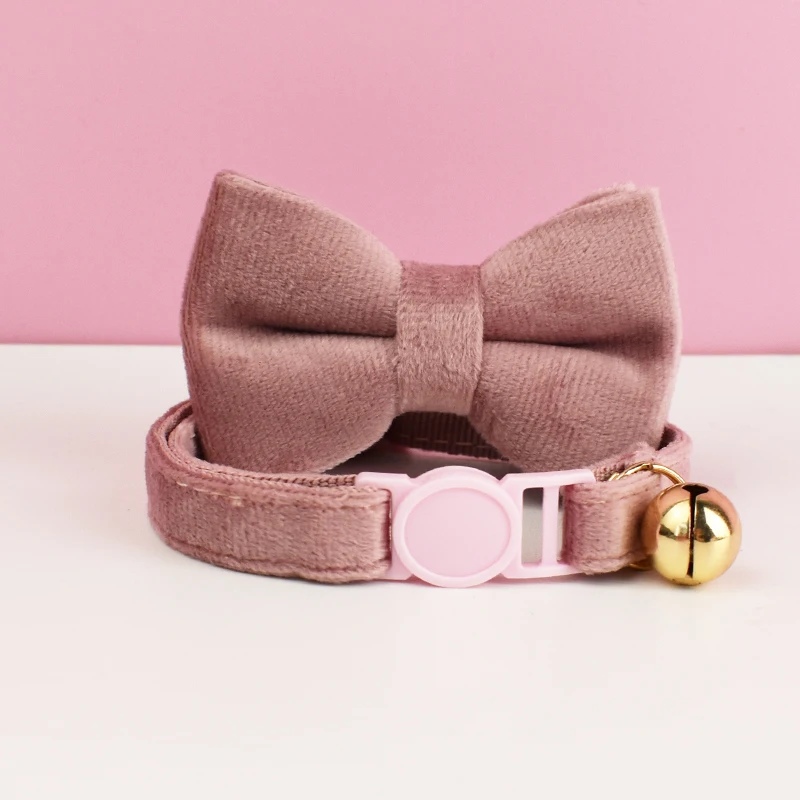 Collar ajustable de terciopelo para gatos con lazo, seguridad para mascotas que evita asfixia, cómodo y elegante para gatos