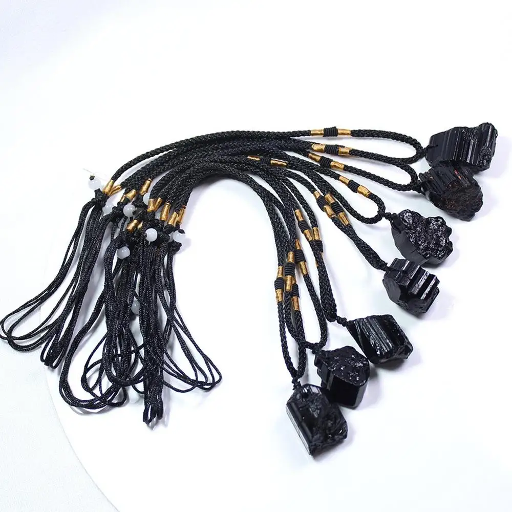 1. Collar de buena suerte: Nuestro collar de turmalina negra es una poderosa piedra de tierra que trae buena suerte. Disfrute de la energía positiva y la abundancia en su vida con su diseño fuerte y resistente.