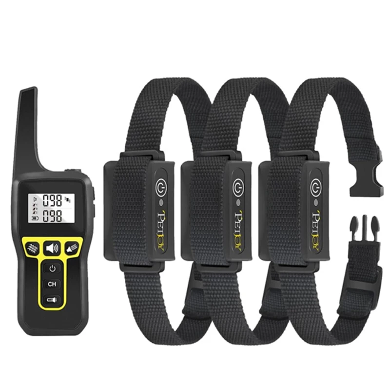 Características principalesModo de entrenamiento multifuncional: incluye funciones de vibración, zumbidos y linterna para adaptarse a las diferentes necesidades de entrenamiento.Adecuado para varios perros: admite el control de hasta 3 cachorros al mismo tiempo, lo cual es muy adecuado para varias familias de mascotas.Receptor de diseño resistente al agua: sin miedo a la lluvia o a las caídas accidentales al agua, lo que garantiza un uso normal en todas las condiciones climáticas.Aplicación: especialmente diseñado para perros pequeños y medianos para satisfacer las necesidades de perros de diferentes tamaños.Opere fácilmente con el control remoto, puede ajustar la intensidad del entrenamiento al instante sin dañar a su mascota. Este collar de entrenamiento no sólo es eficiente sino también muy apto para perros.