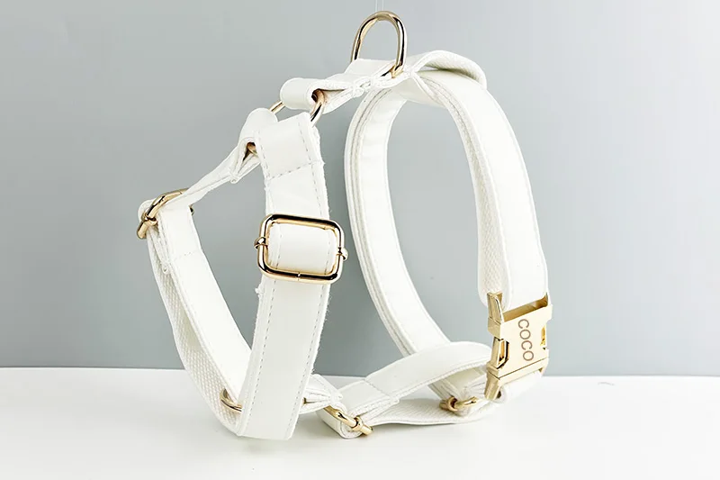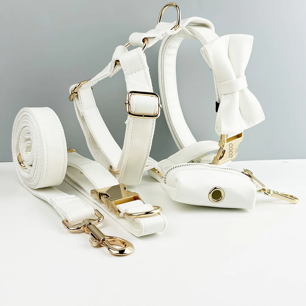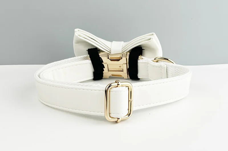 Collar y correa de cuero blanco para perros, placa de identificación grabada personalizada, suministros para mascotas, correa para perros PU01