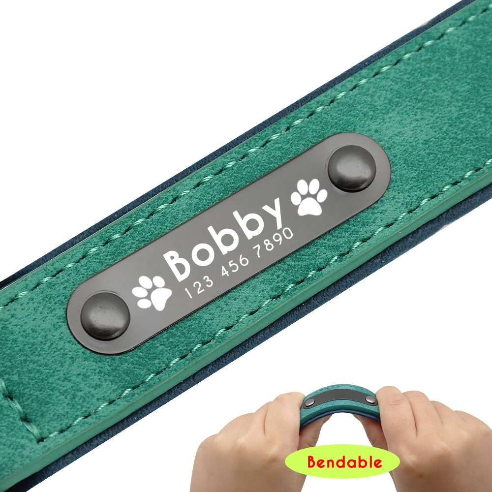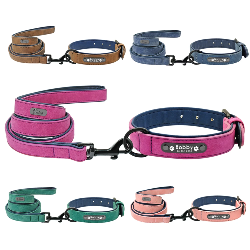 Collar y correa para perro personalizados, collares para perros grabados personalizados acolchados de cuero, juego de cuerda de plomo, Bulldog Pitbull
