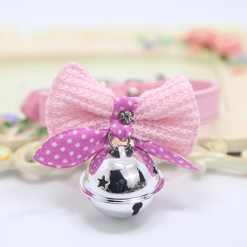 Hermosos collares para mascotas de 6 colores con lazo y campanas