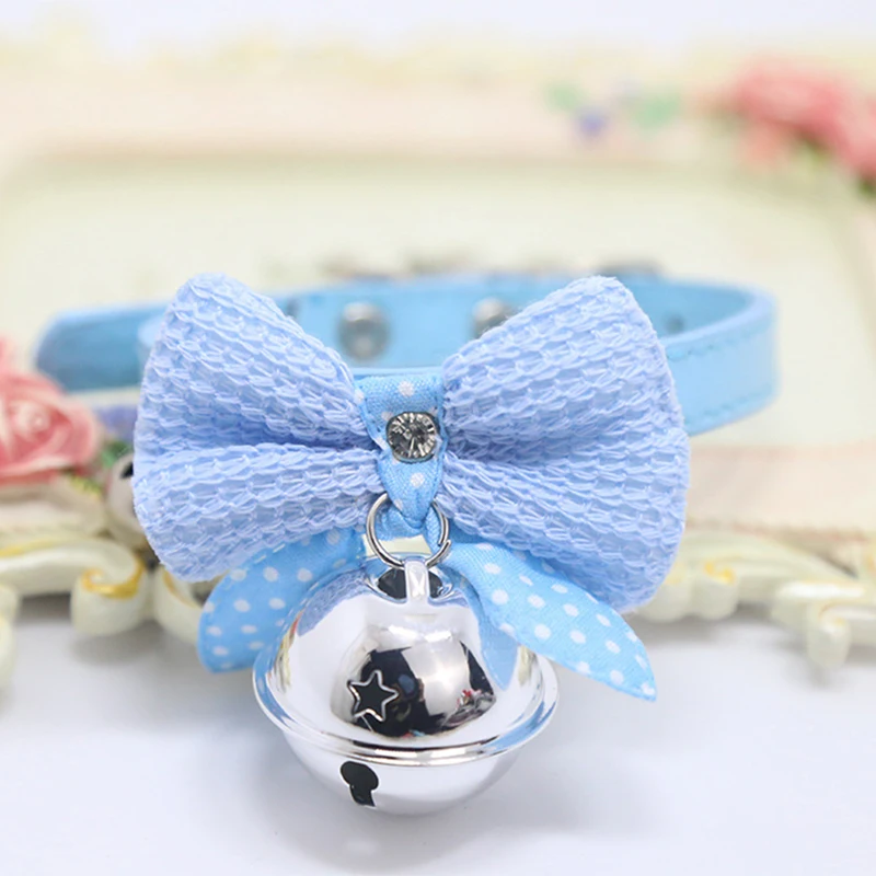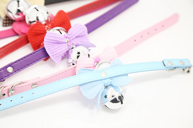 Hermosos collares para mascotas de 6 colores con lazo y campanas