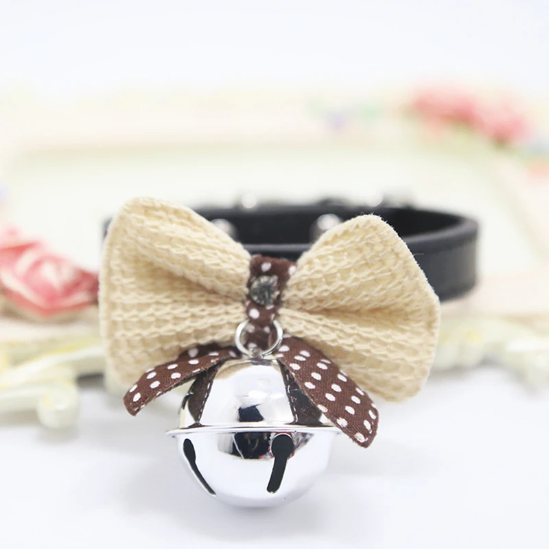 Lindos collares ajustables para perros con lazo y cascabeles, collar de PU, hermoso arnés para perros, gatos, accesorios para tienda de mascotas