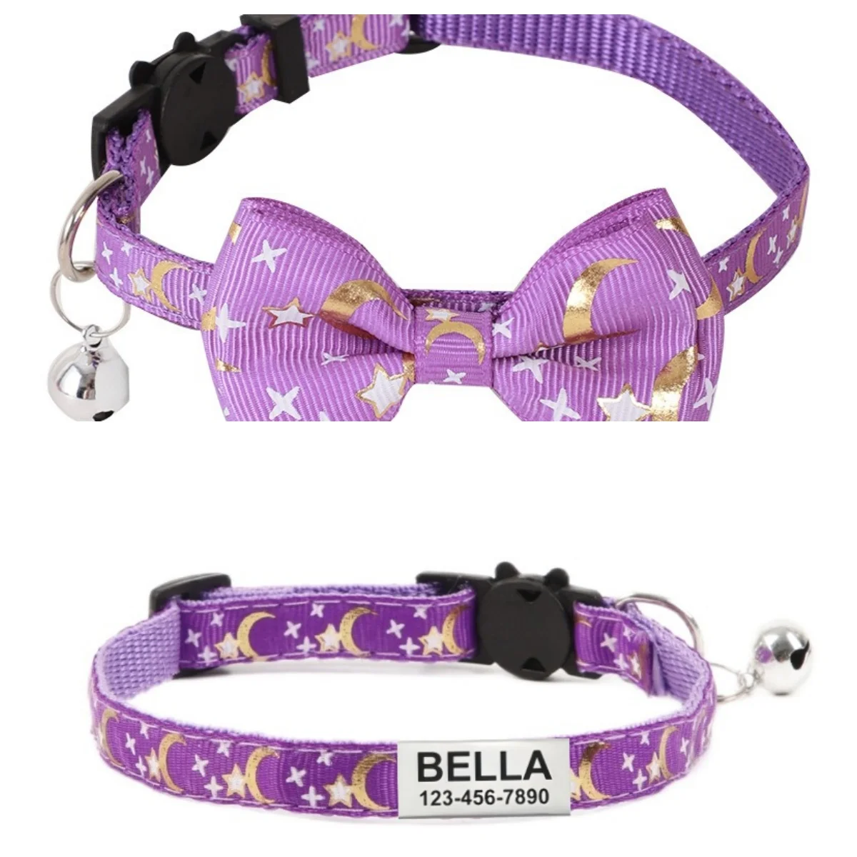 Customized Adjustable Cat Bowtie Kitten Collars Engraved Pet Puppy Name Necklace Collars Anti-lost ID tag for Cats Small Dogs