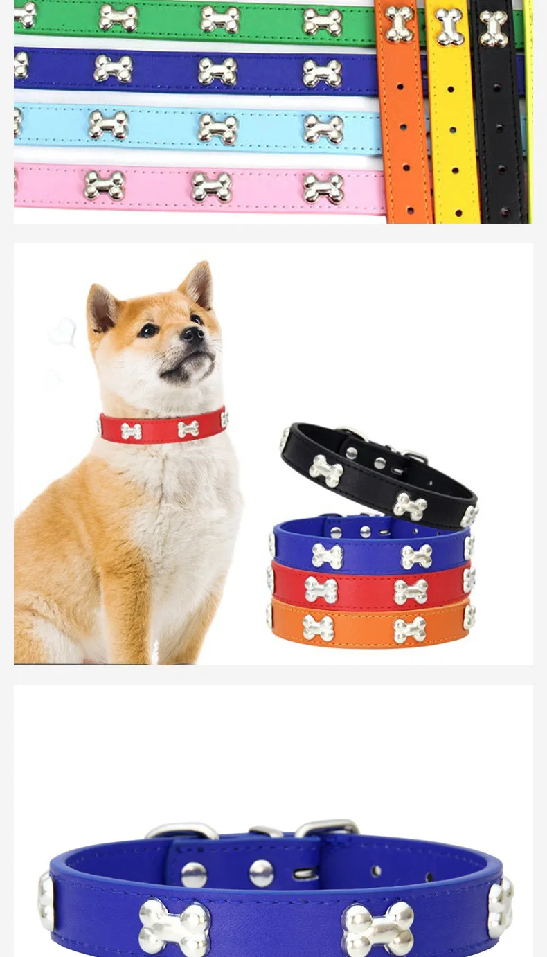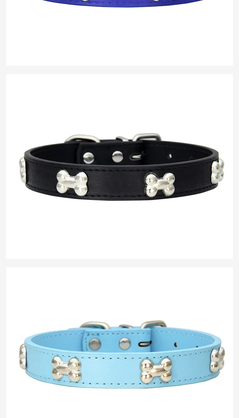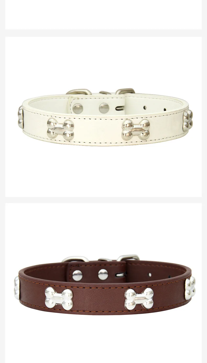 Collares duraderos de cuero de hueso para perros y cachorros, collares para perros pequeños y grandes, accesorios para gatos, Chihuahua, Collar para mascotas para perros pequeños