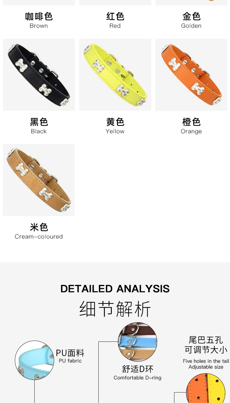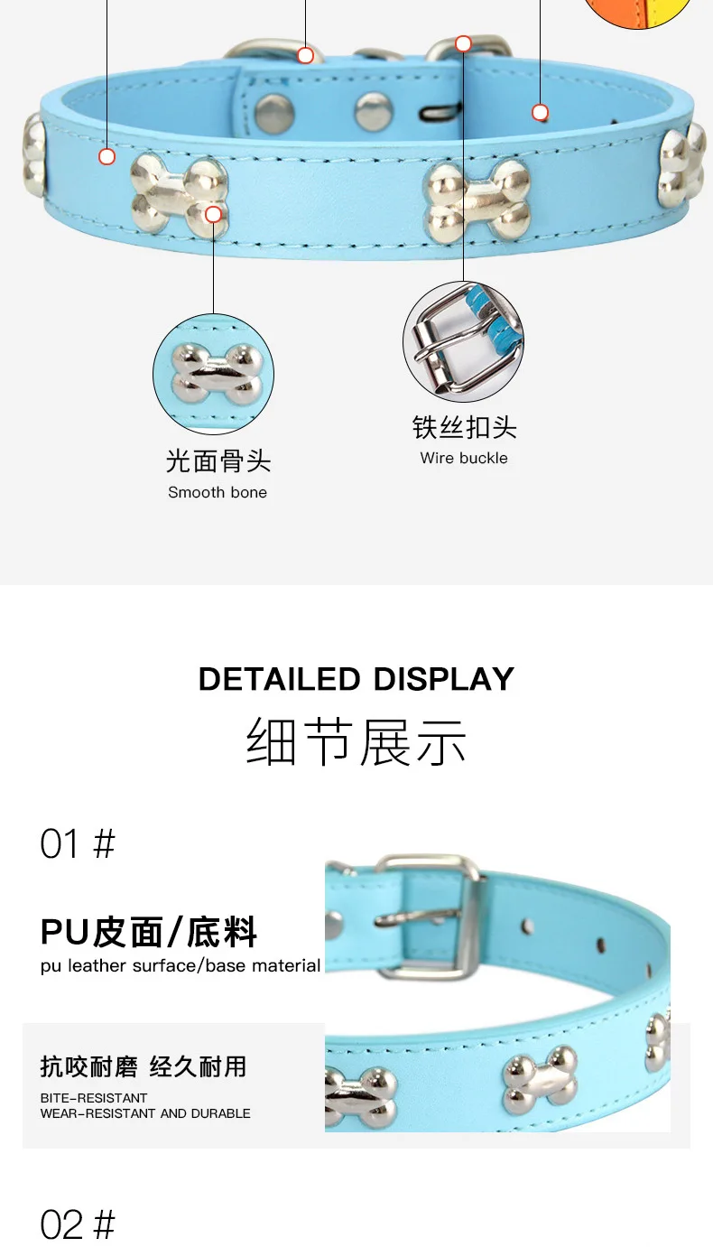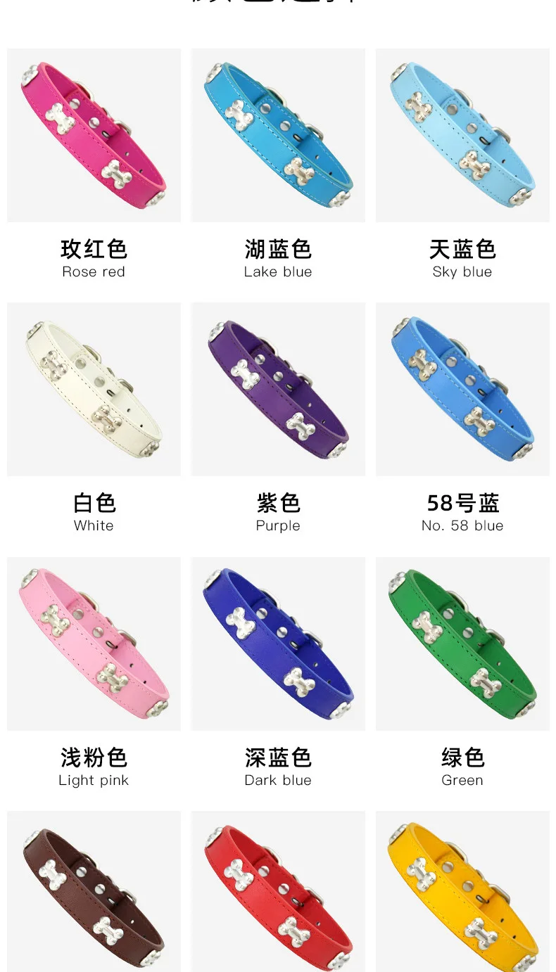 Collares duraderos de cuero de hueso para perros y cachorros, collares para perros pequeños y grandes, accesorios para gatos, Chihuahua, Collar para mascotas para perros pequeños
