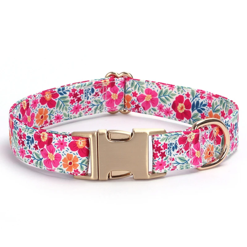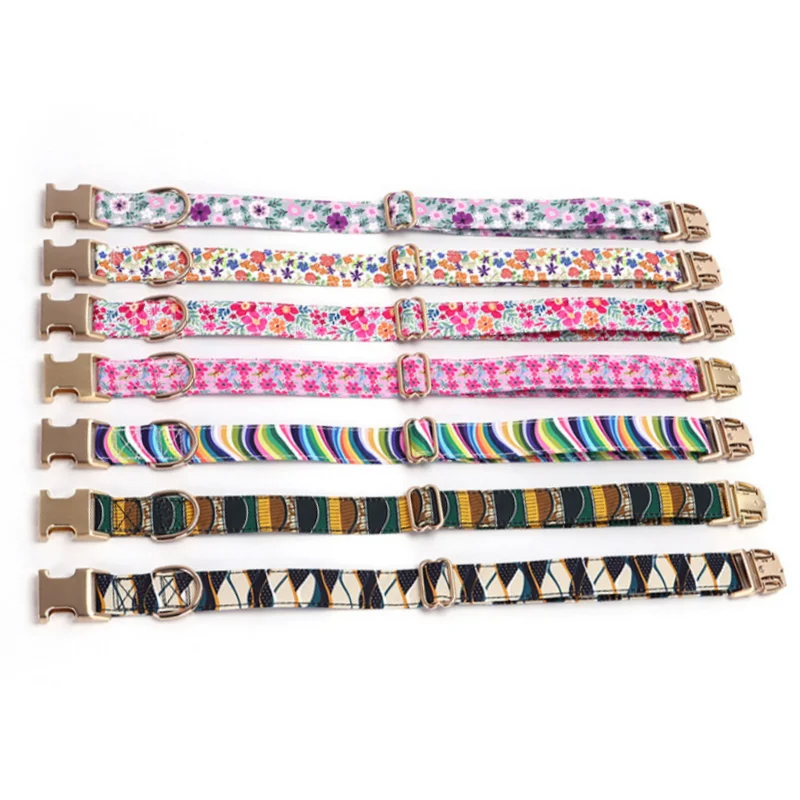 Collares personalizados con etiqueta de identificación para perros, collar de lujo para mascotas, estampado Floral, correa para el cuello para cachorros, collar ajustable para gatos, suministros antipérdida para perros