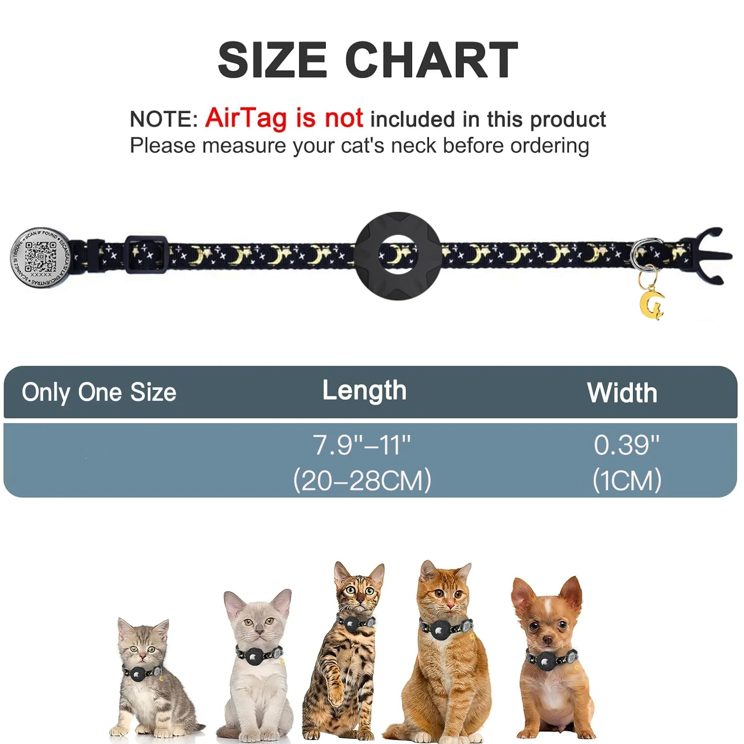 Collares de gatito con adornos de luna con soporte de airtag de manzana, Collar de gato desmontable con etiqueta de nombre de código QR etiqueta de identificación de gato gatos personalizados