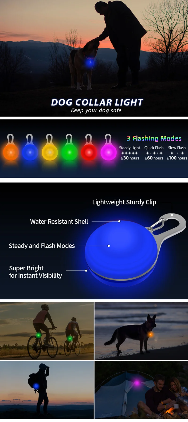 Introducción del producto: Se puede colgar en el collar de su mascota para facilitar los viajes nocturnos y realizar un seguimiento de su paradero en cualquier momento; También se puede utilizar como llavero.También es un juguete flash y una cosita muy cómoda.