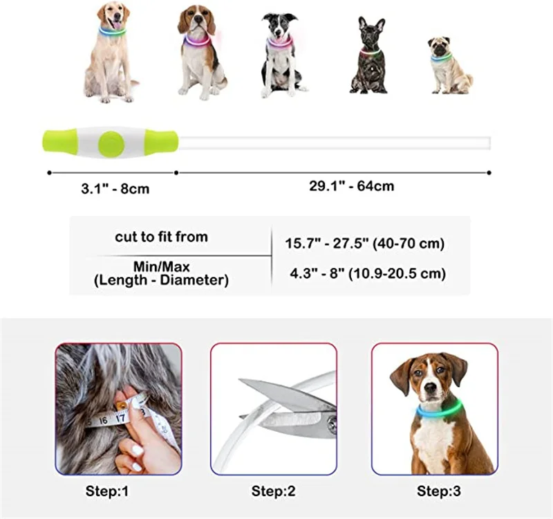 ★Adjustable size: the total length of light up dog collar is approx. 27.5 inches, and you could easily tailor the length to the size of the dog's neck like spaniel, labrador, hound, German shepherd, collie and more