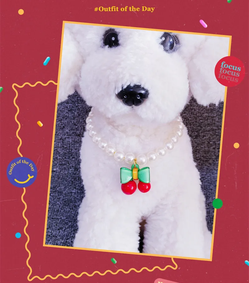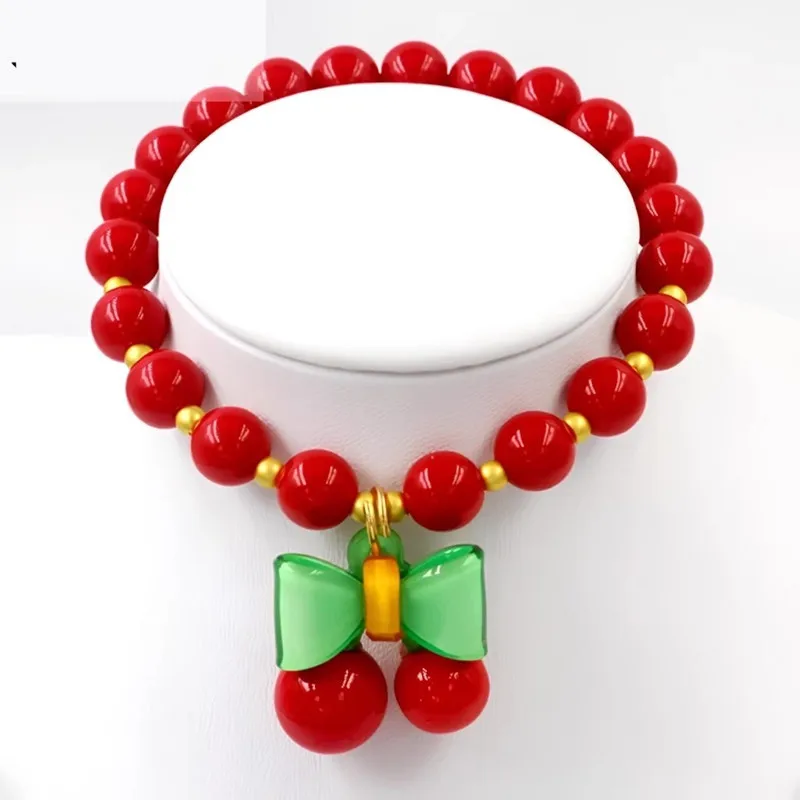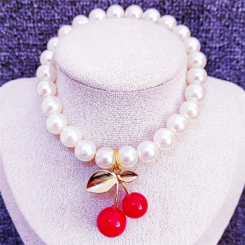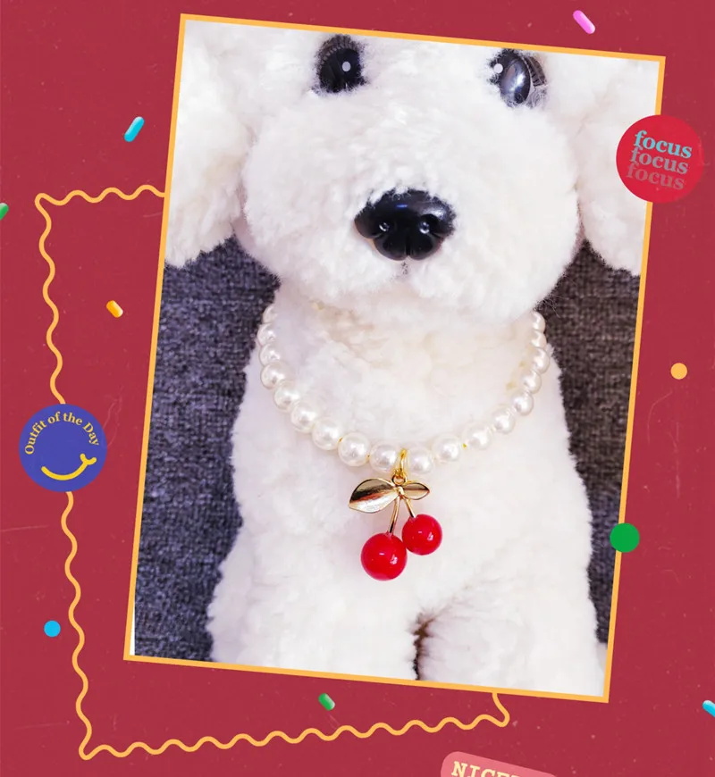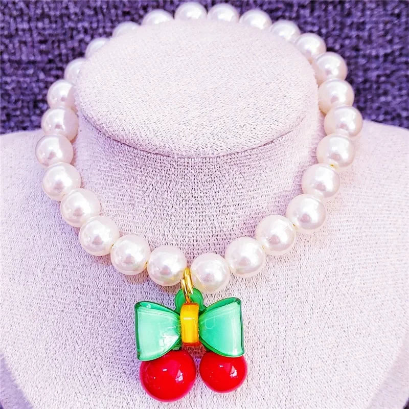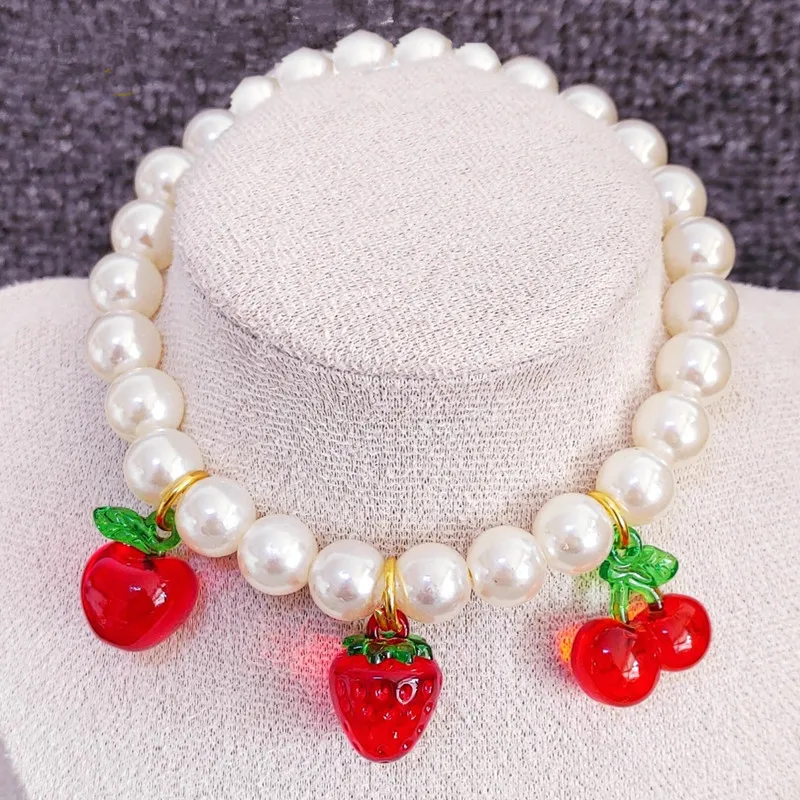 Collares para mascotas, collares de perlas para perros y gatos, joyería con lazo, cereza, fresas, Collar para perros, accesorio de aseo para mascotas