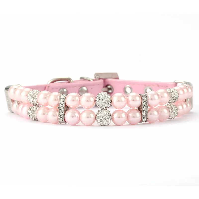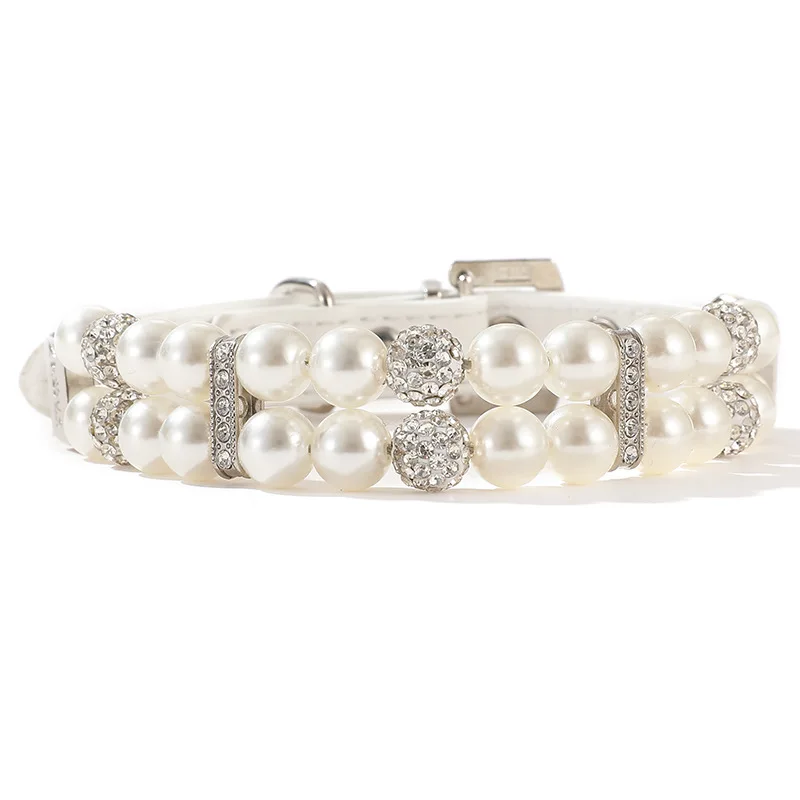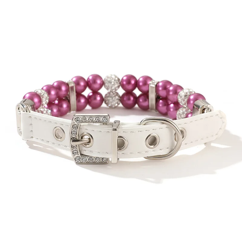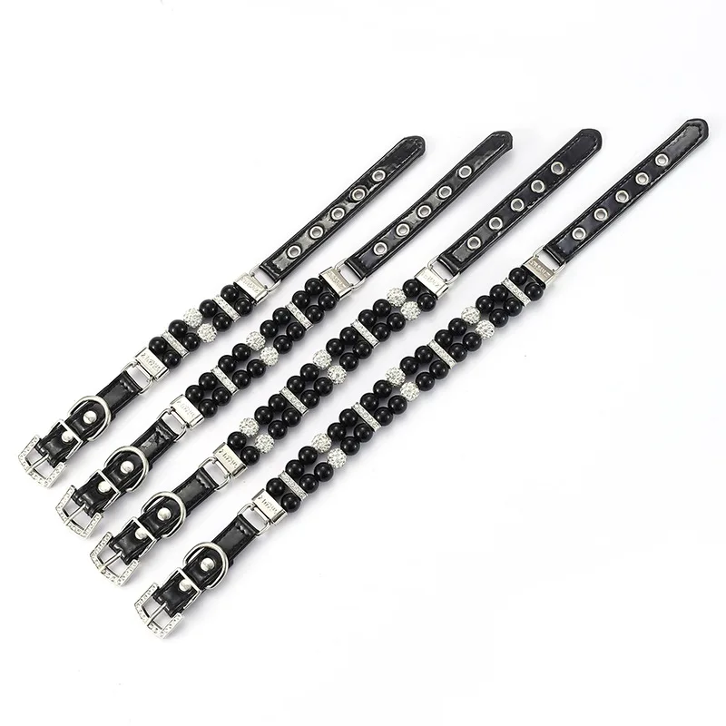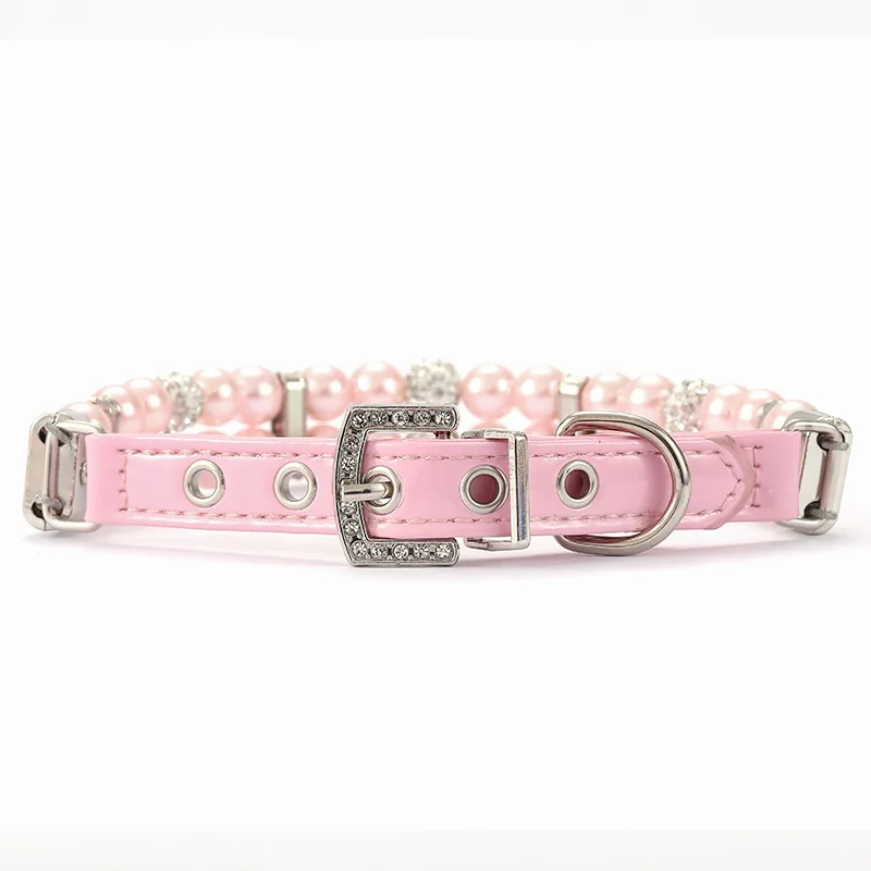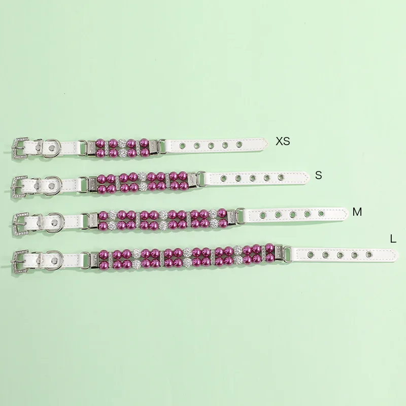 Collares de perlas para gatos, bonitos collares de cuero PU para mascotas, correa con diamantes de imitación de cristal para perros, gatos, cachorros, gatitos, fiesta, boda, cumpleaños