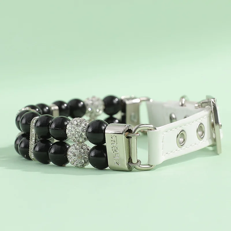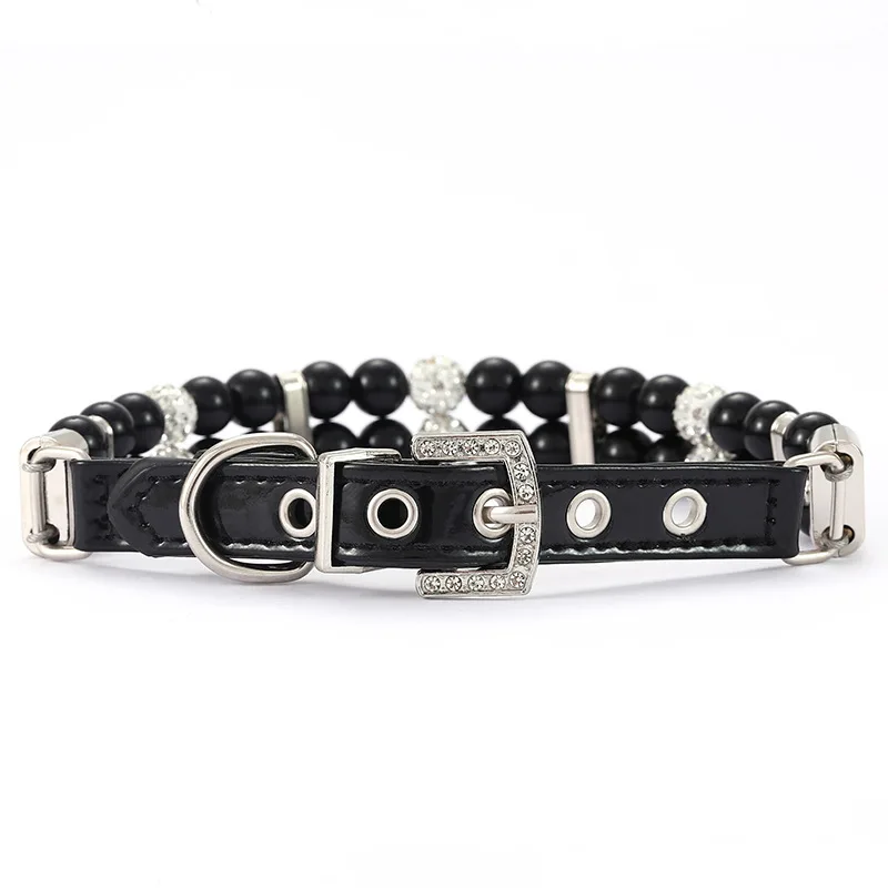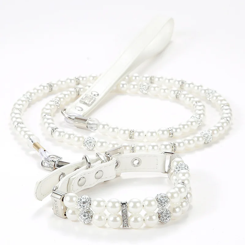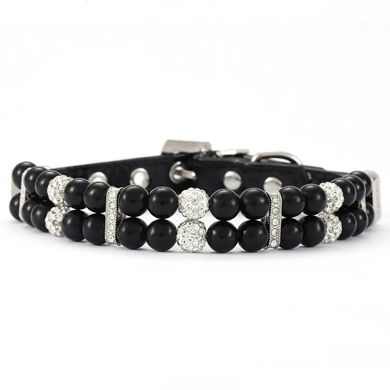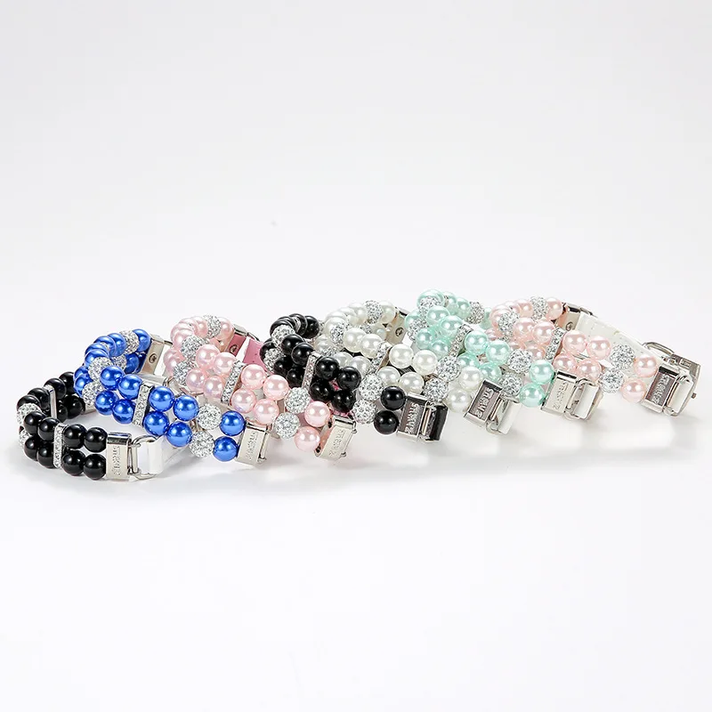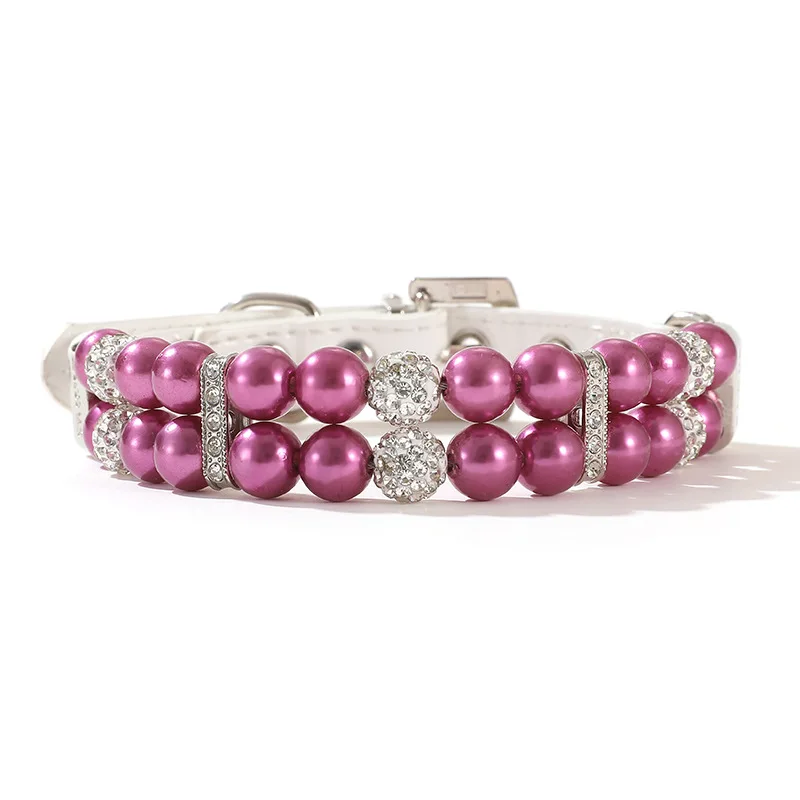 Collares de perlas para gatos, bonitos collares de cuero PU para mascotas, correa con diamantes de imitación de cristal para perros, gatos, cachorros, gatitos, fiesta, boda, cumpleaños