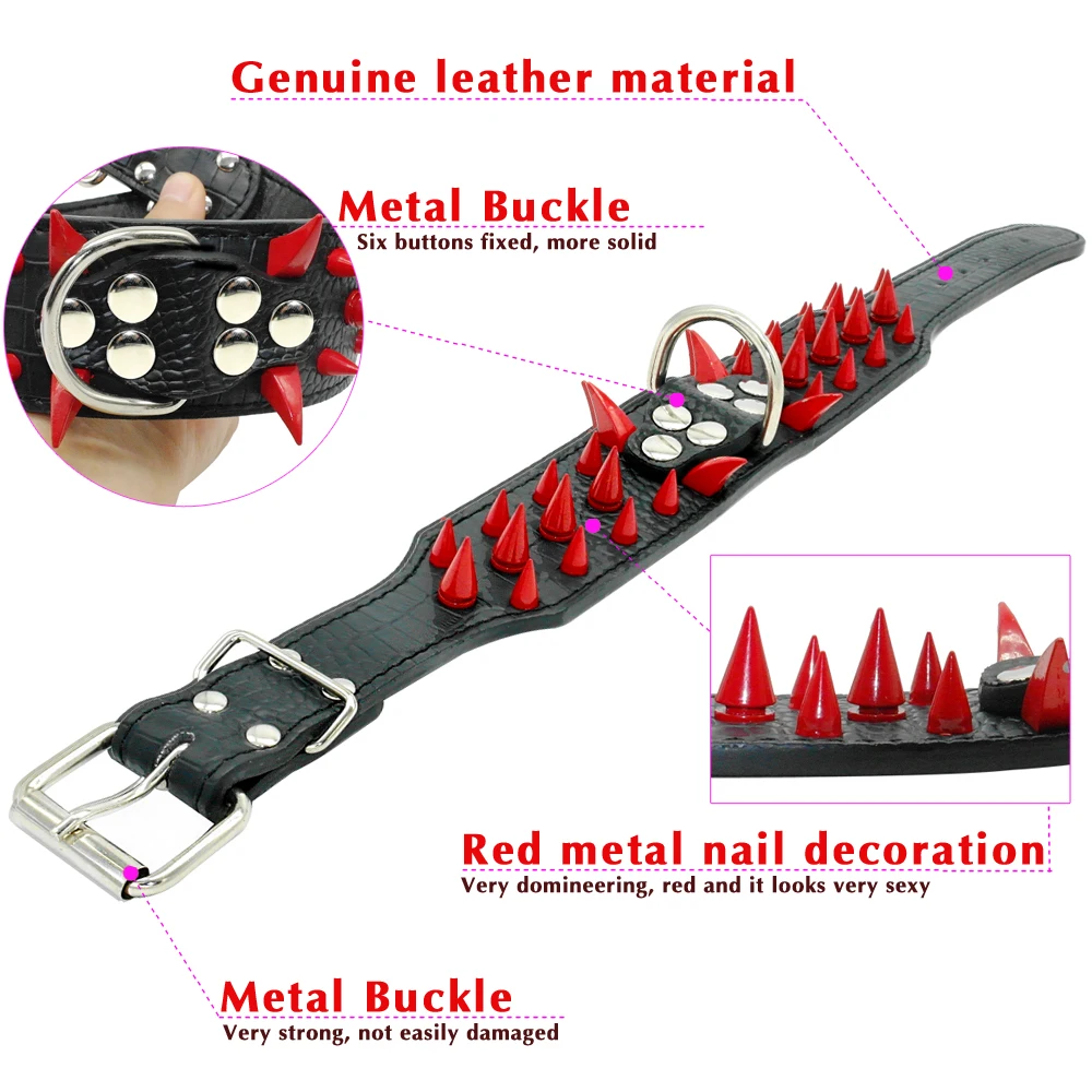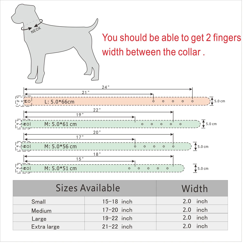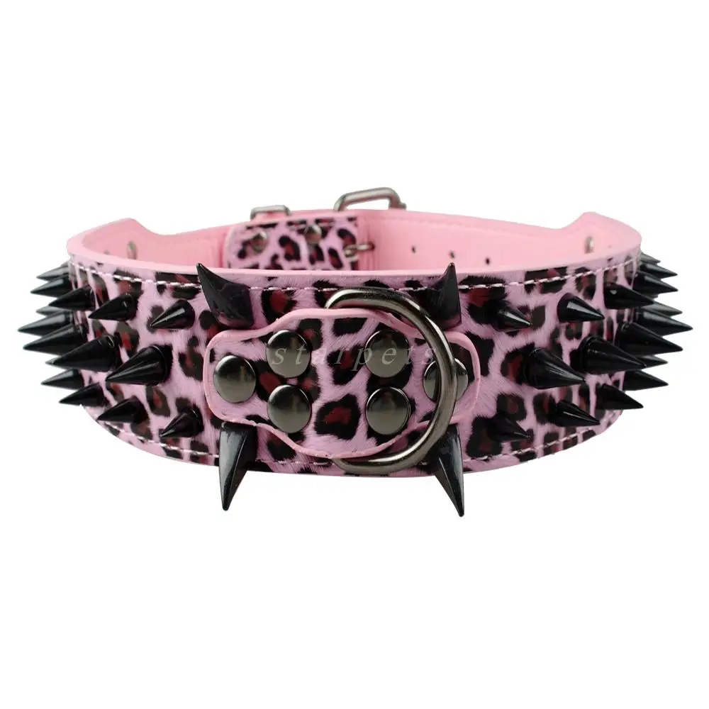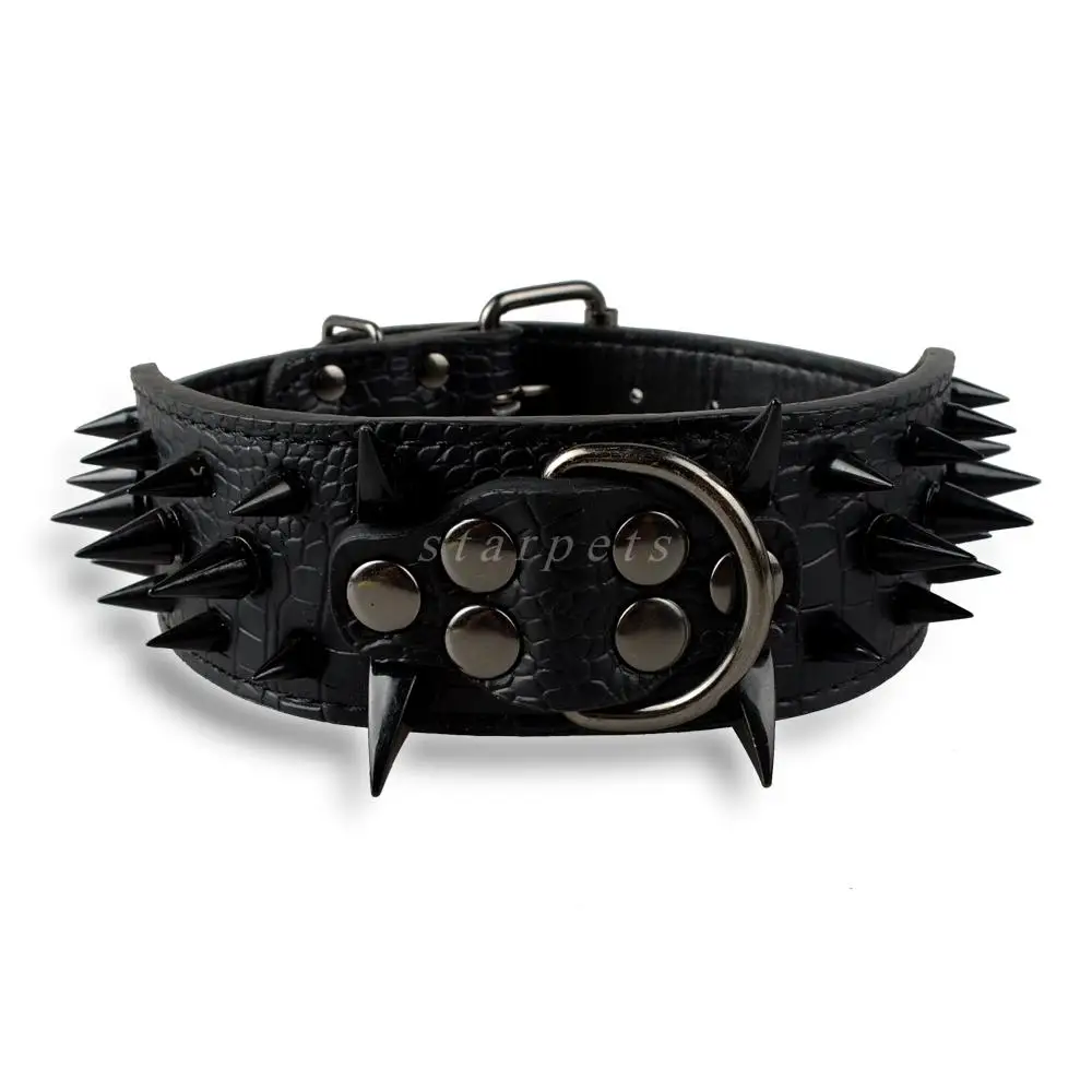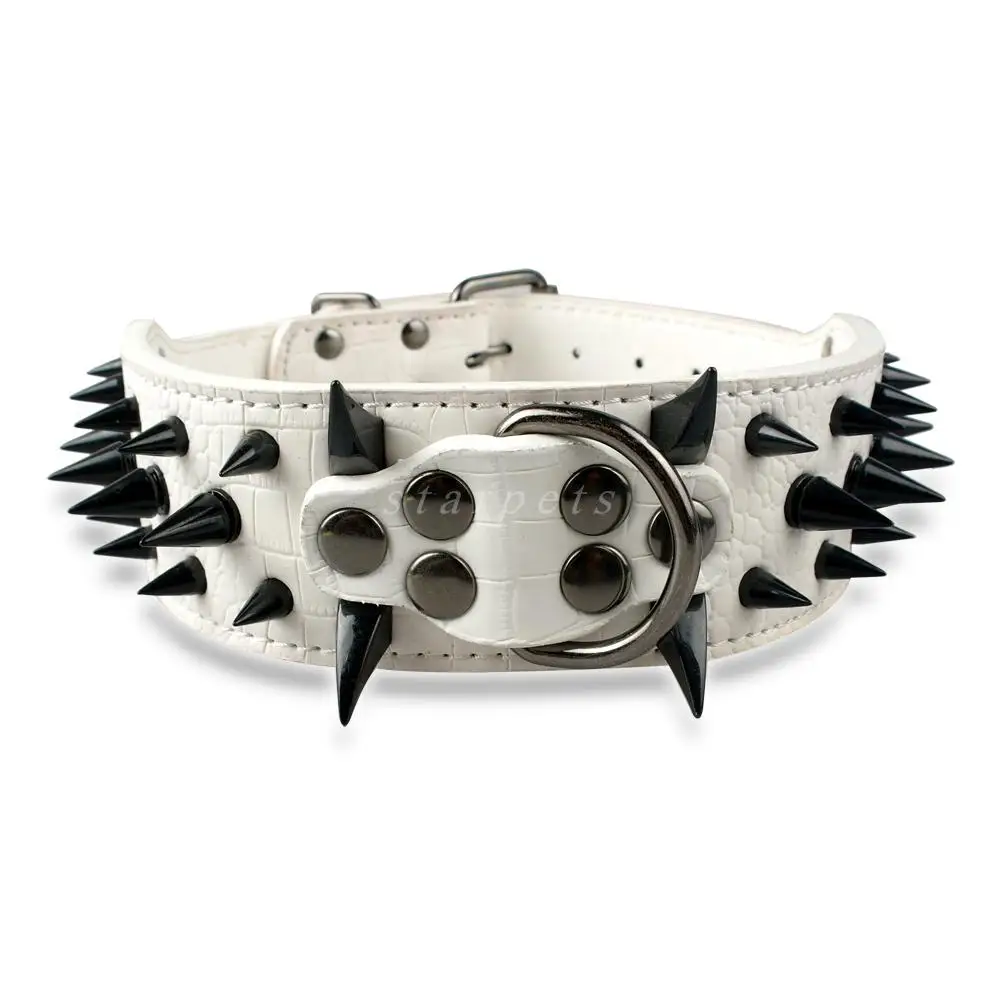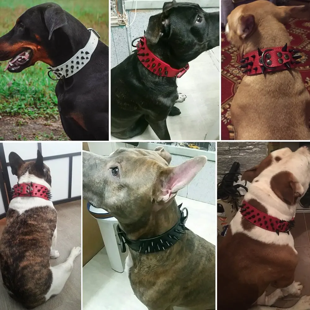 Collares de perro de cuero con tachuelas y puntas anchas de 2", Collar de perro grande Pitbull Bulldog ajustable para perros medianos y grandes Boxer S M L XL