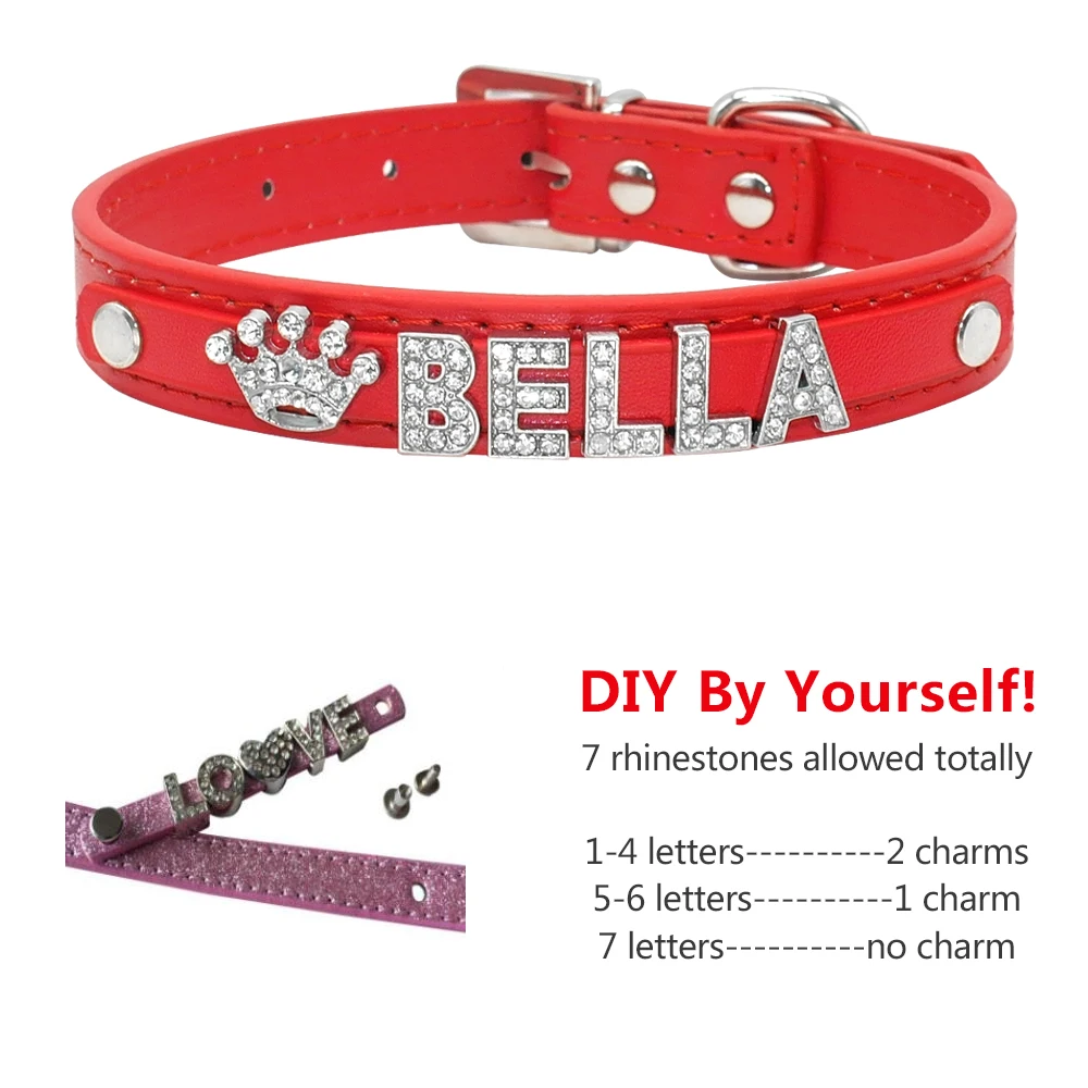 Collar personalizado con diamantes de imitación ostentosos para cachorros y perros pequeños, collares personalizados con nombre libre, dijes con letras, accesorios para mascotas, color rosa