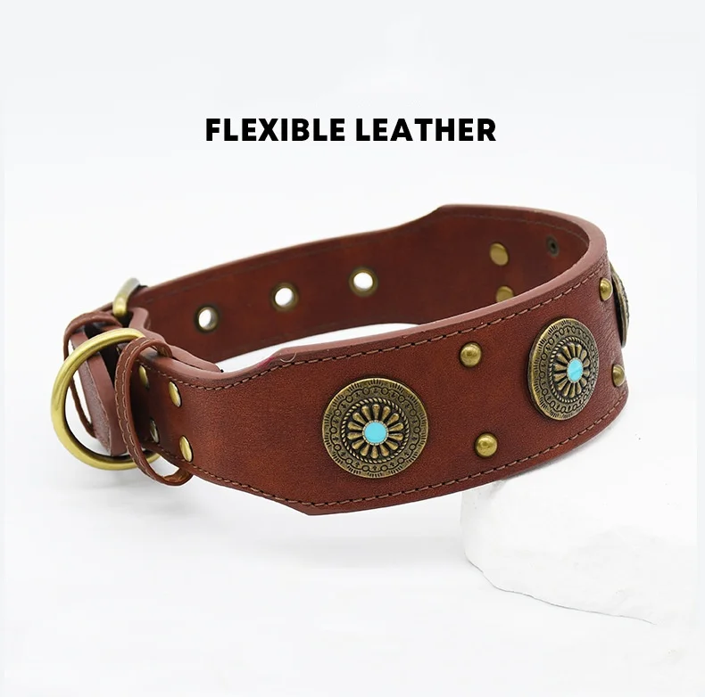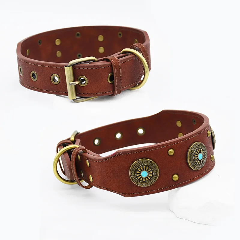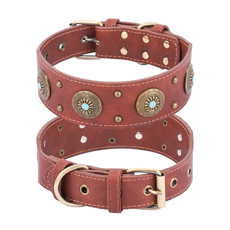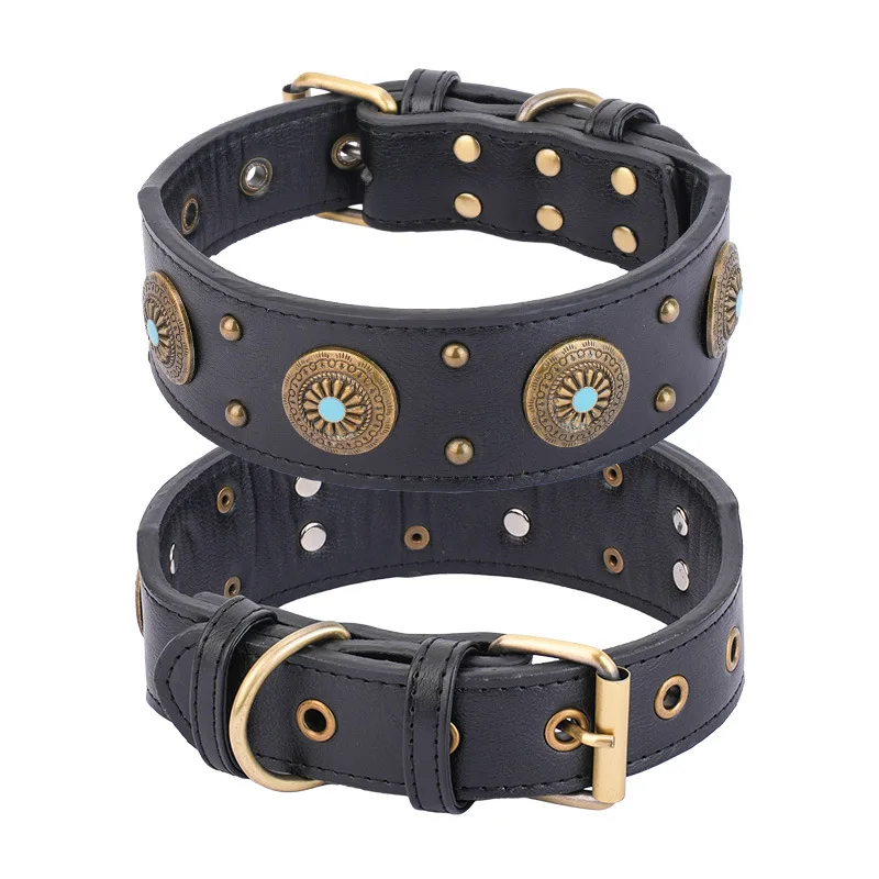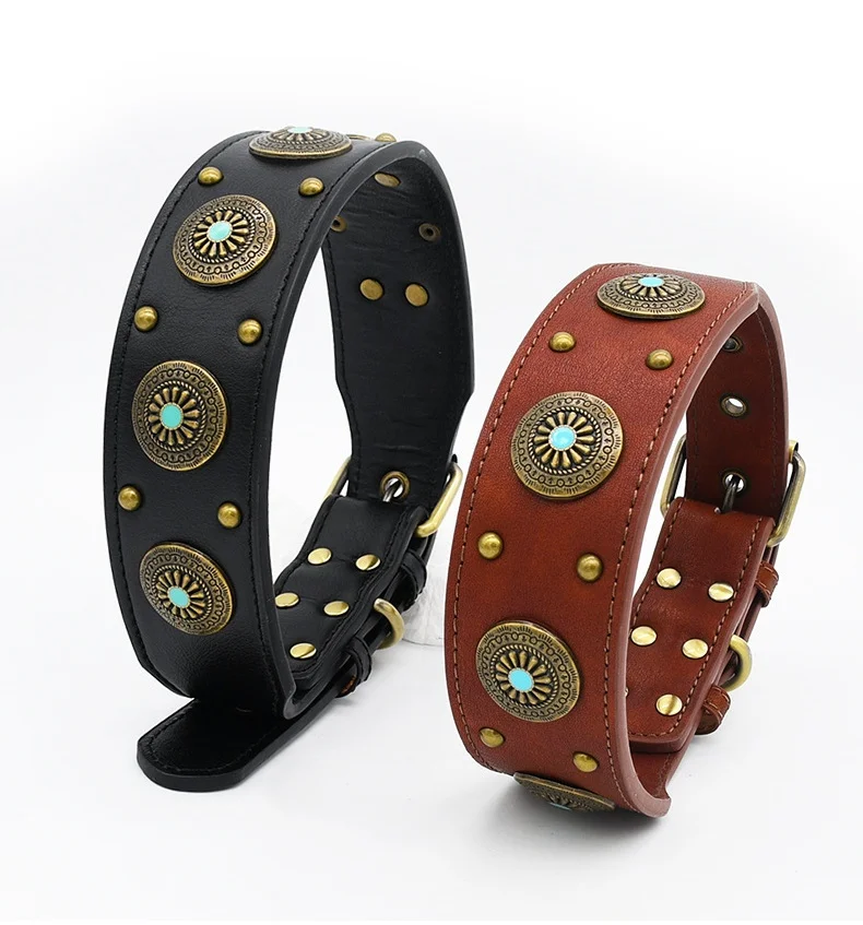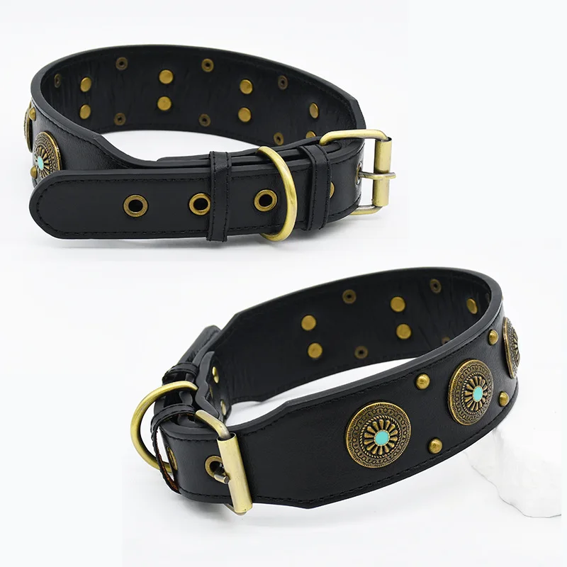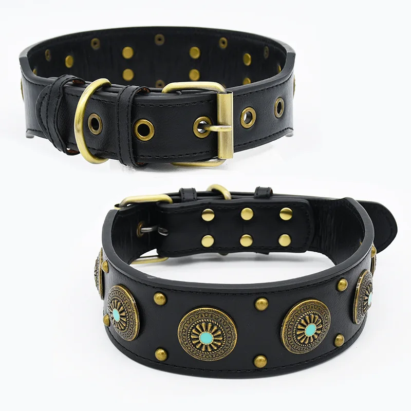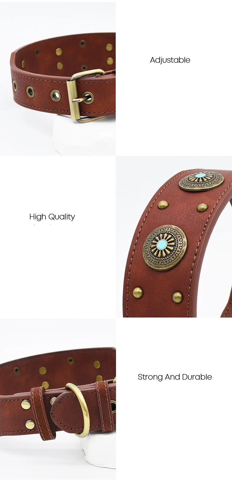 Collares para perros grandes y medianos con remache, Collar para perros con tachuelas ajustables, Collar ancho de cuero PU con pinchos Vintage
