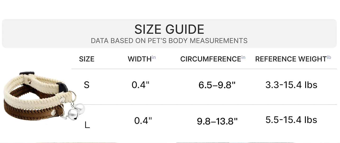 【Tamaño ajustable】El collar de gatito tamaño S se puede ajustar de 16 a 25 cm/6,5 a9,8 pulgadas, y el tamaño L se puede ajustar de 25 a 35 cm/9,8 a 13,8 pulgadas.El ancho es de 1 cm/0,4 pulgadas.Mide la circunferencia del cuello de tu gato antes de comprar.Para garantizar que el tamaño del cuello sea el más cómodo y ajustado.