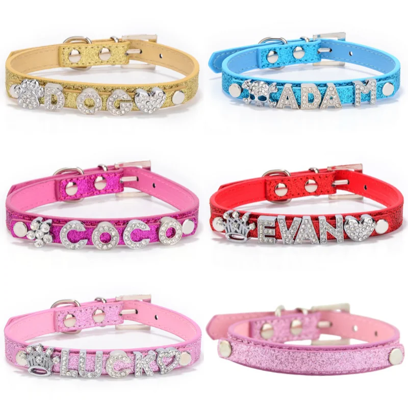Collares personalizados para perros, colgante para mascotas con diamantes de imitación ostentosos, correa para el cuello para gatitos y cachorros antipérdida, collares para gatos con identificación personalizada, suministros para perros