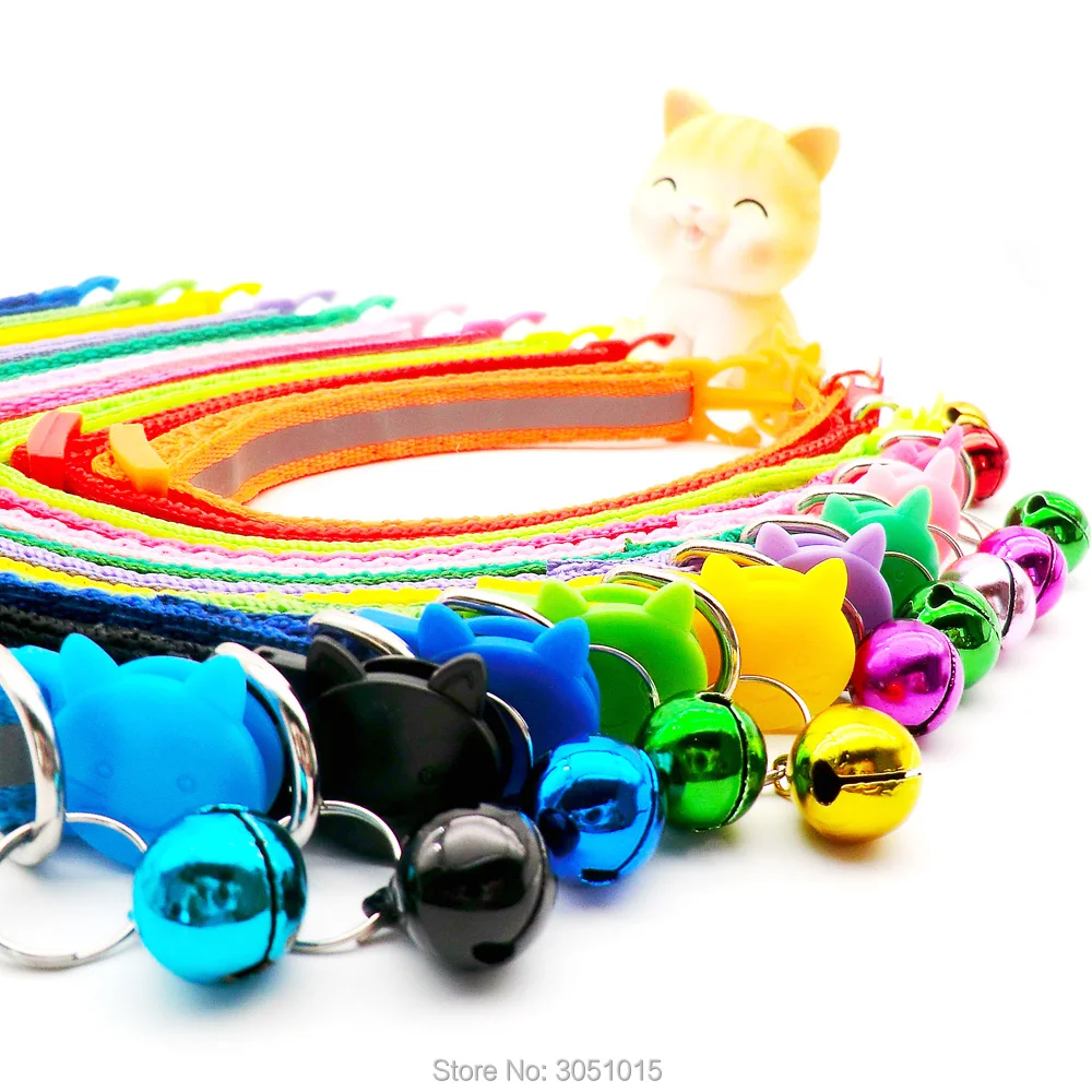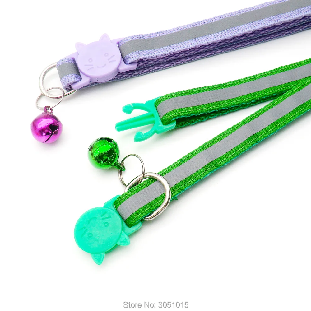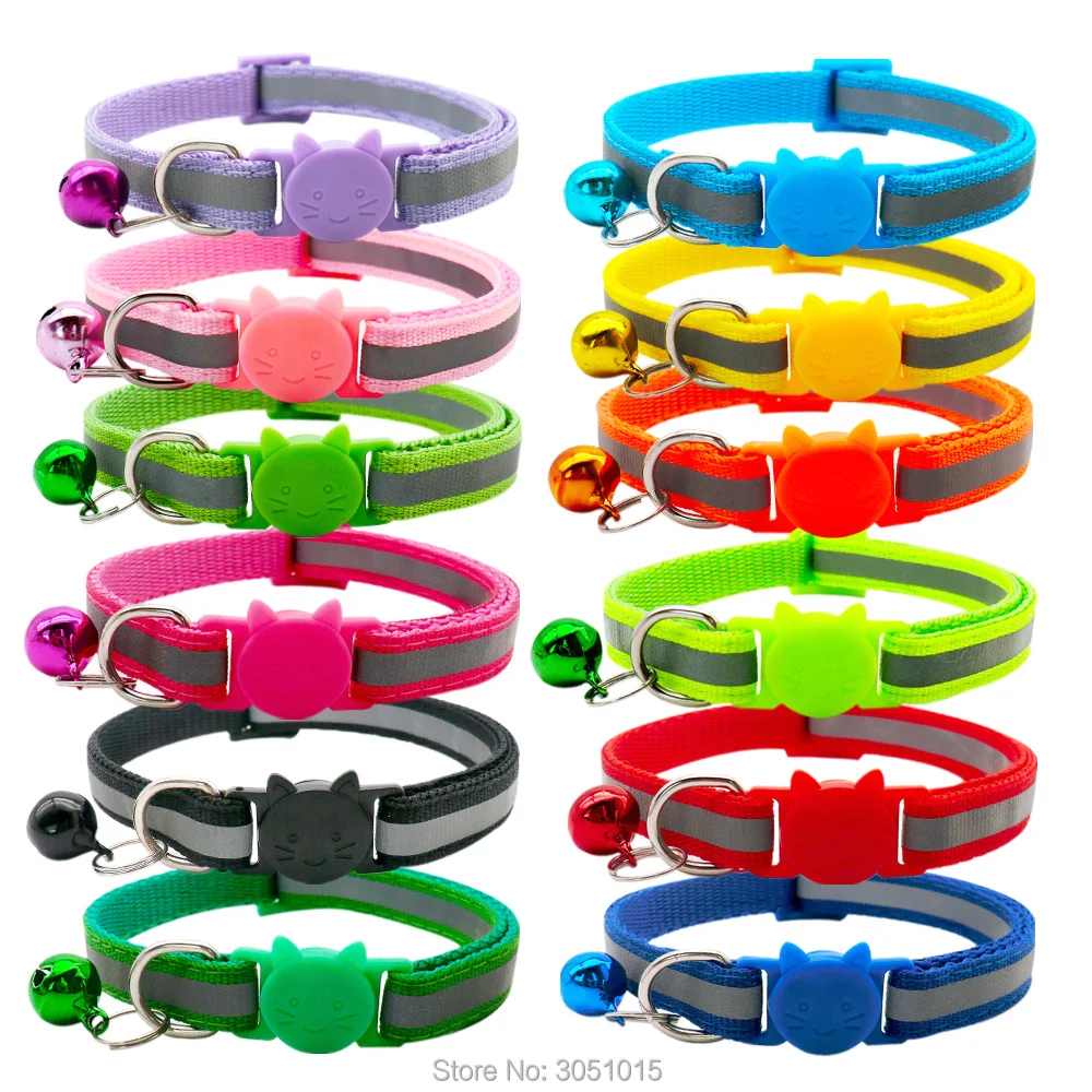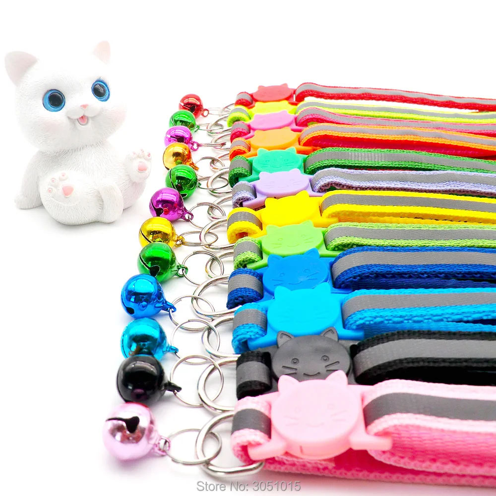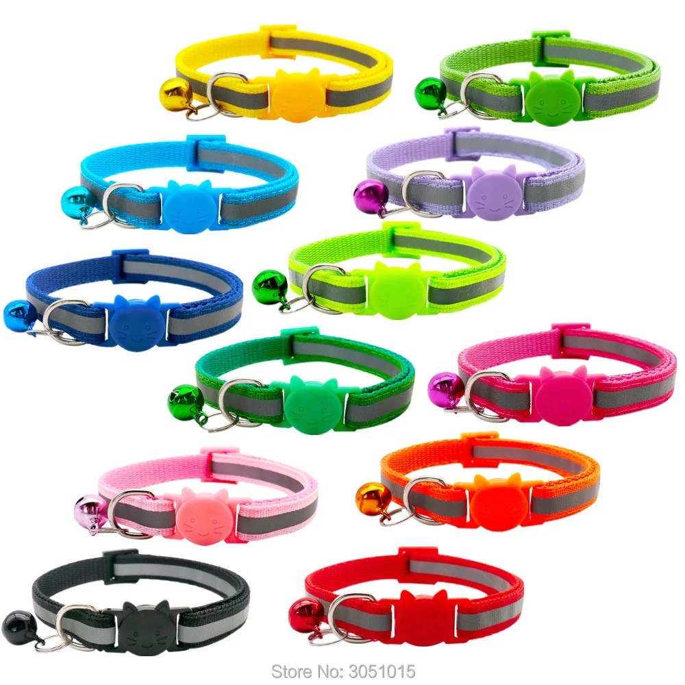 Wholesale 100Pcs Adjustable Reflective Dog Collars With Bell Buckle Easy Wear Puppy Dog Cat Collar Accessories Pet Supplies