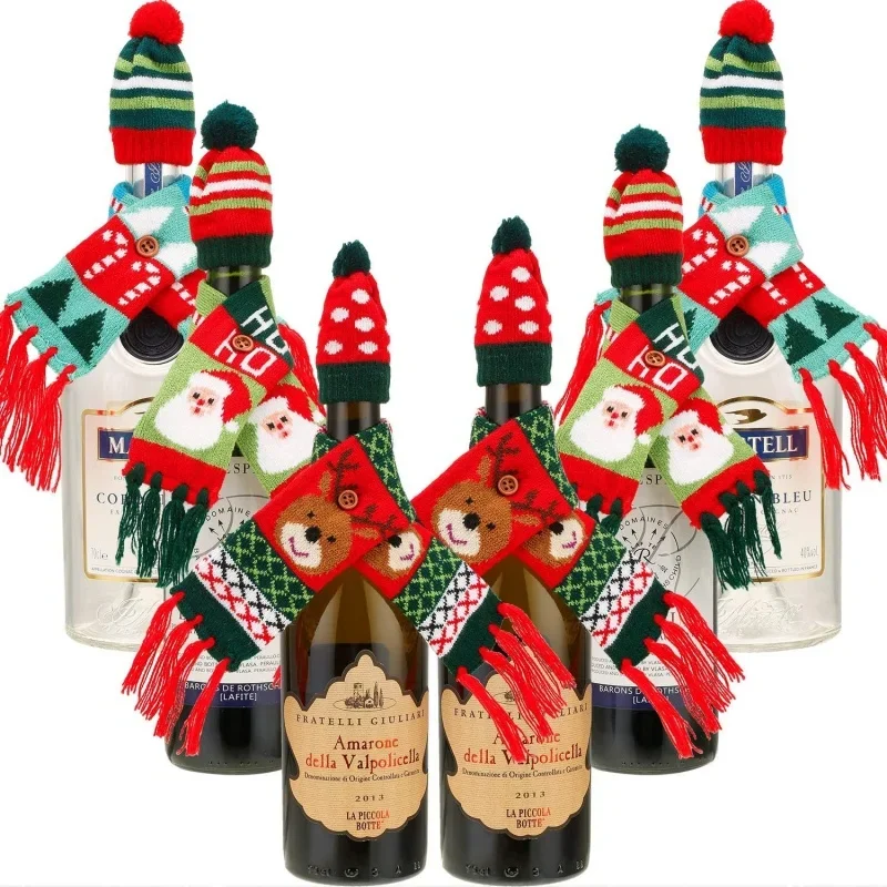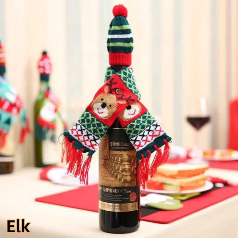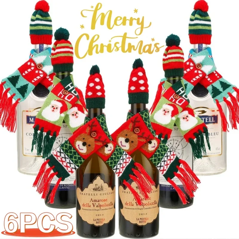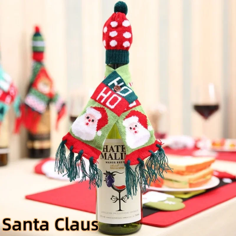 Color aleatorio 1/2/3PCS Decoración navideña para mascotas pequeñas - Lindo suéter de punto de alce de Papá Noel bufanda sombrero