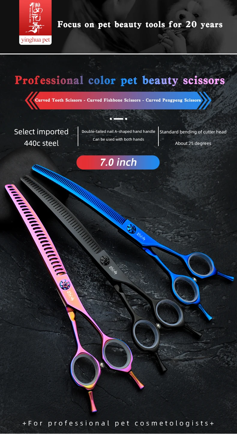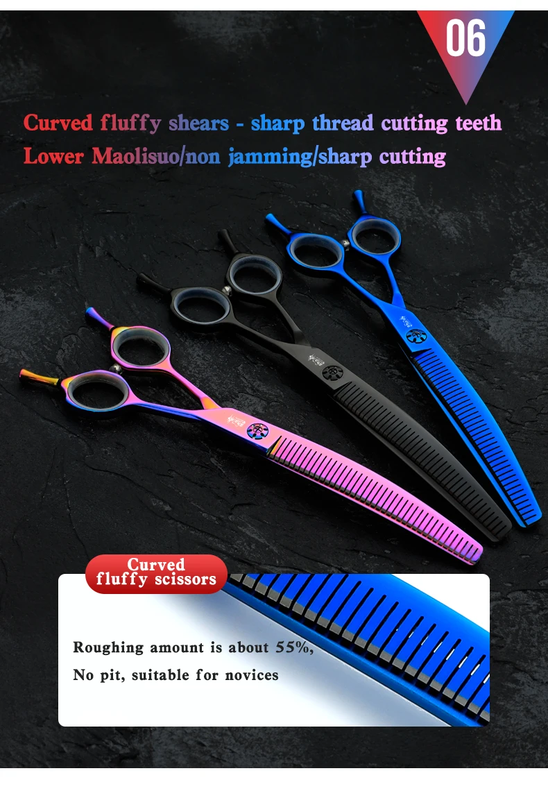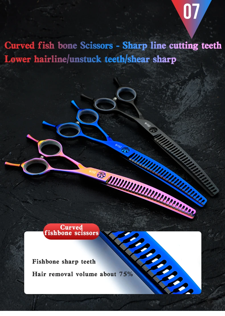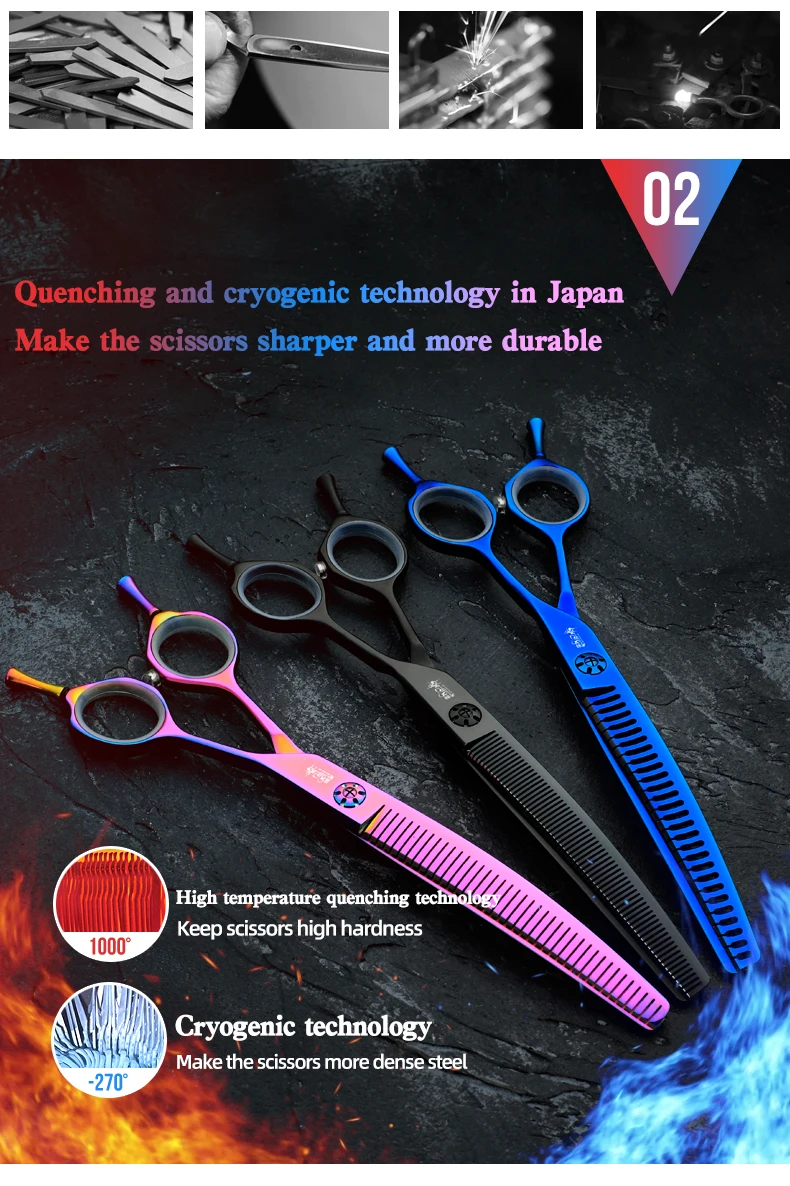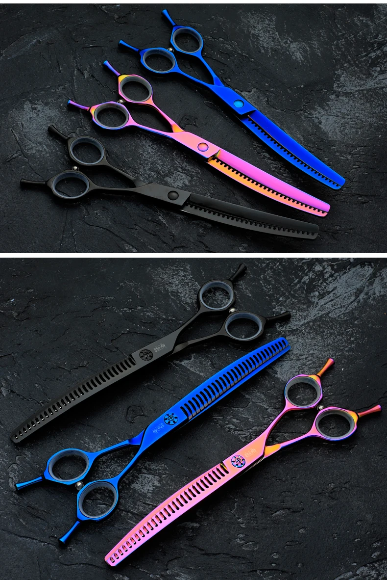 Color profesional JP440c 7 pulgadas de alta calidad tijeras de peluquería para perros y mascotas tijeras de adelgazamiento curvadas tijeras más delgadas