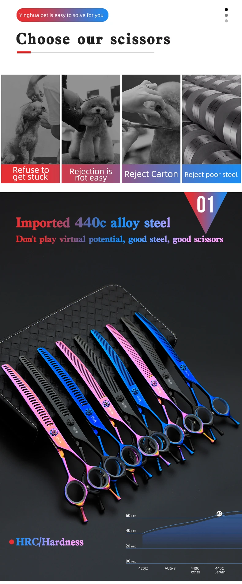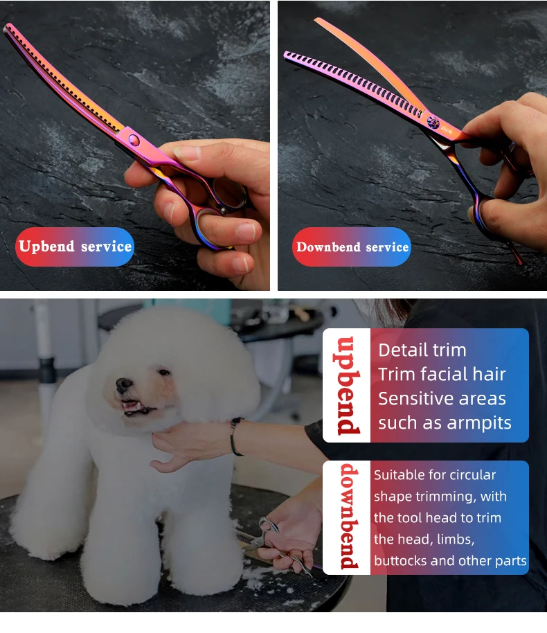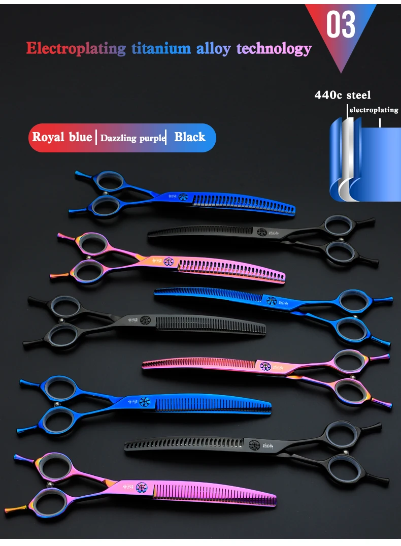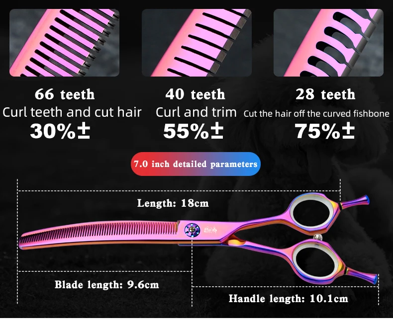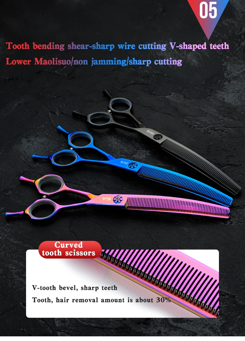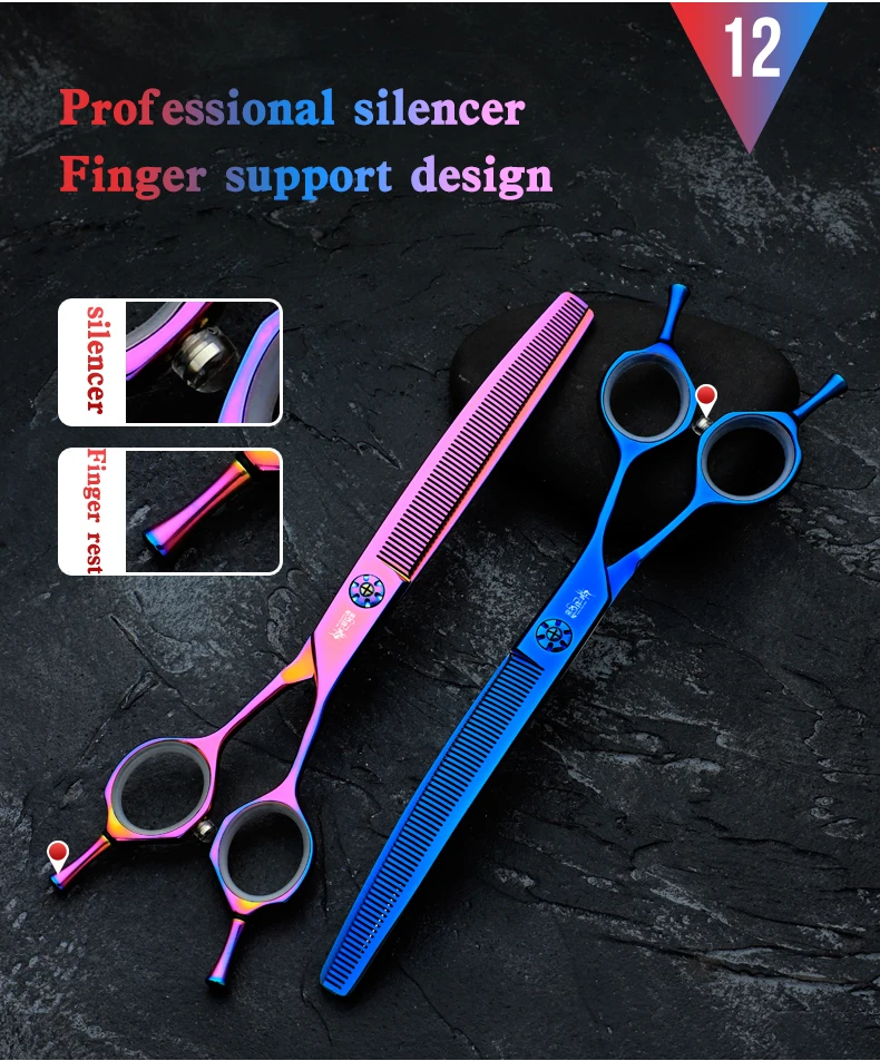 Color profesional JP440c 7 pulgadas de alta calidad tijeras de peluquería para perros y mascotas tijeras de adelgazamiento curvadas tijeras más delgadas