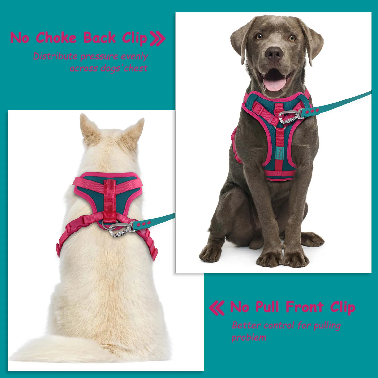Colores de empalme, transpirable para perros medianos sin tirones, arnés para perros grandes y pequeños, correa ajustable para el pecho, arnés para perros al aire libre