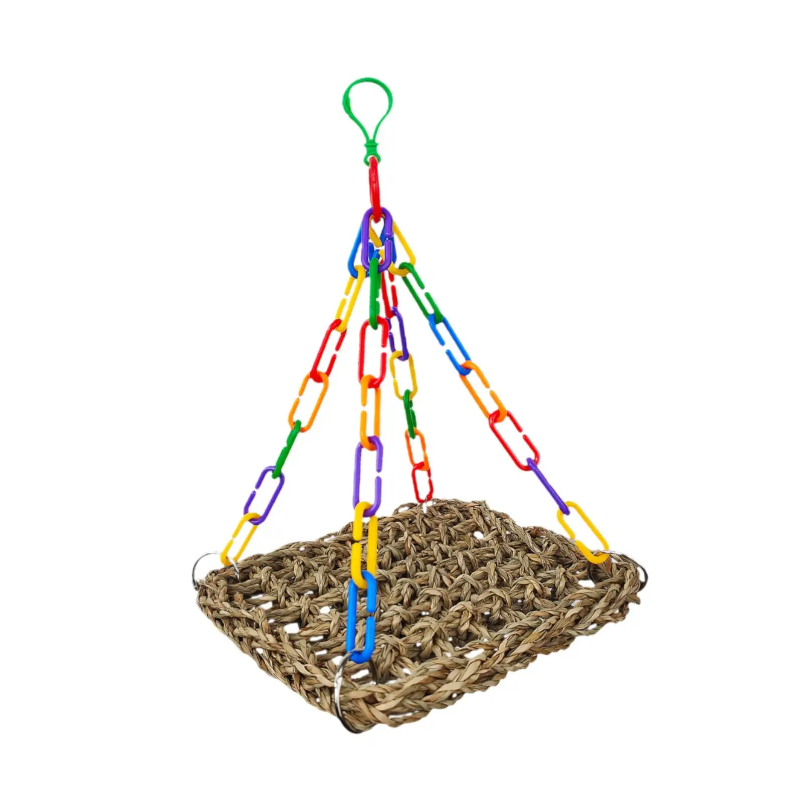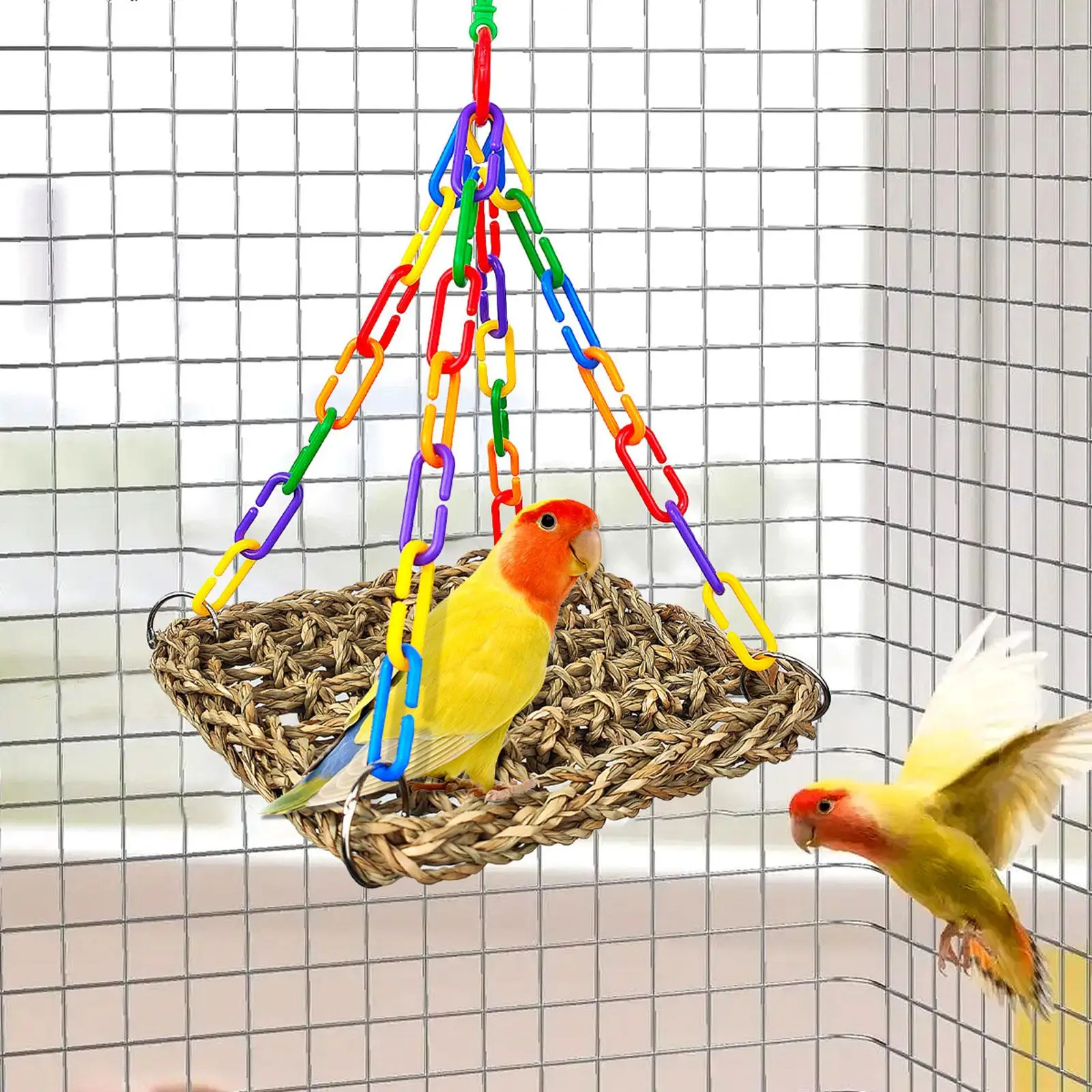 【Construcción robusta】: hecha de cuerda de paja y materiales resistentes, esta tumbona para loros puede soportar el uso regular sin dañarse fácilmente, lo que garantiza que su mascota disfrute a largo plazo.