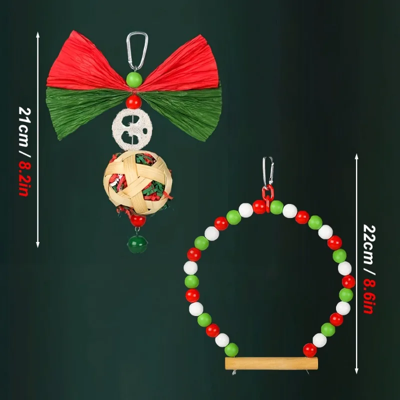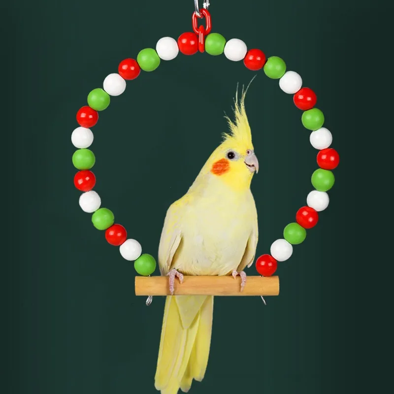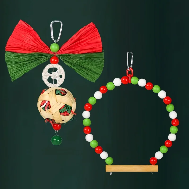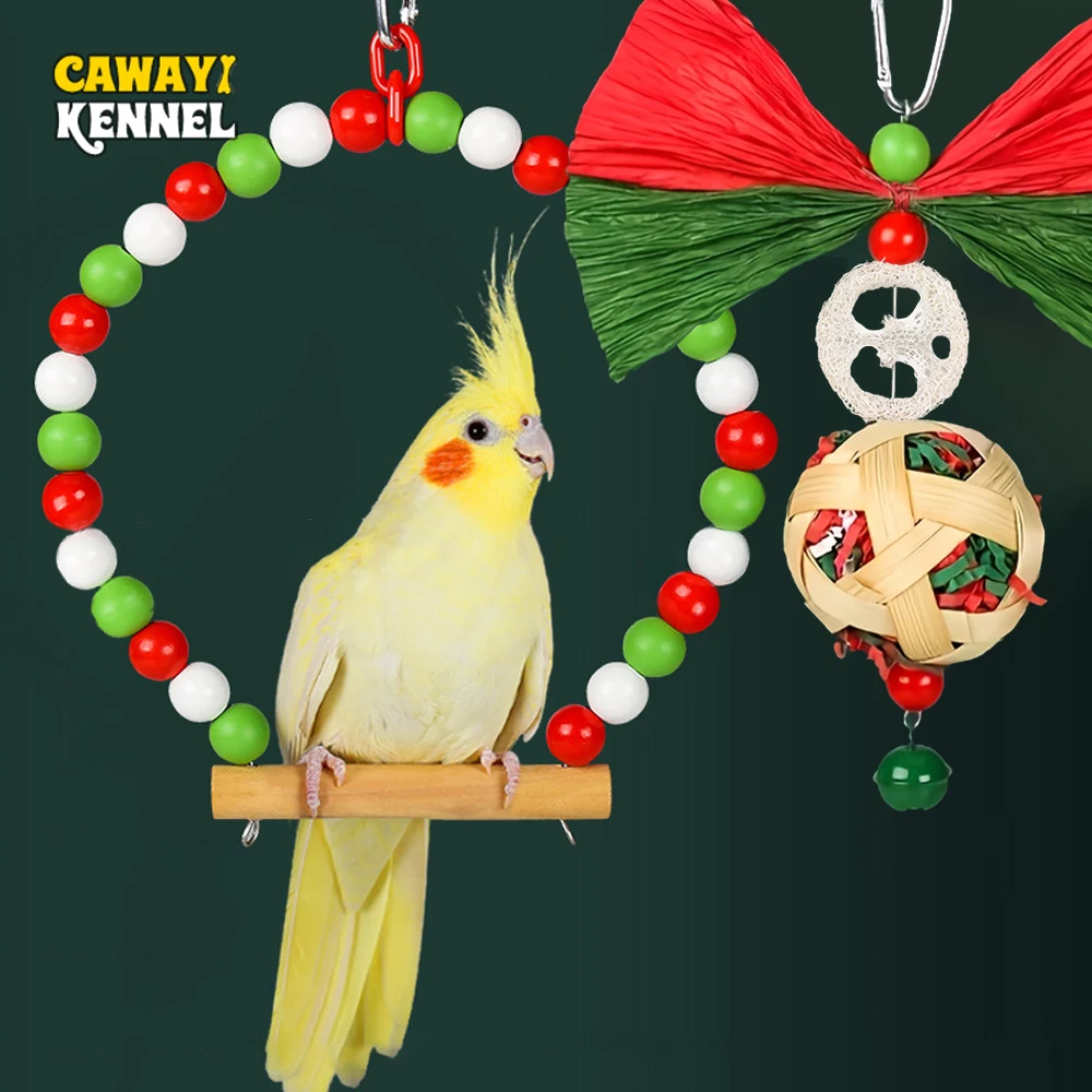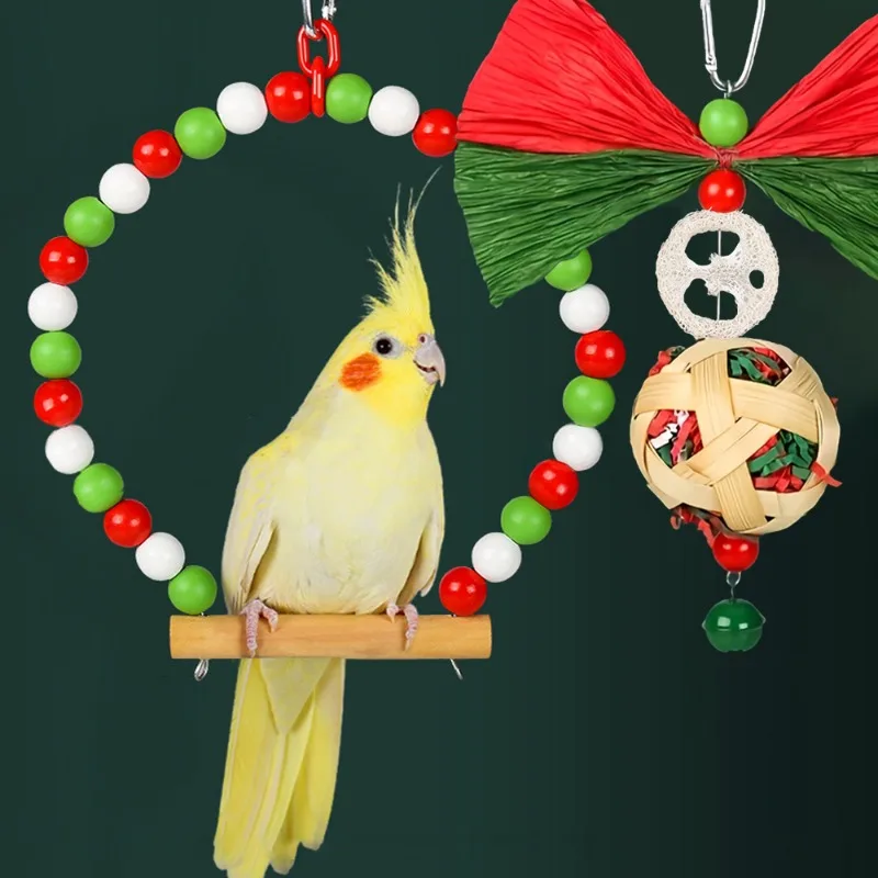 Columpio de madera Natural para pájaros de Navidad, juguete colgante para masticar para animales pequeños, mascotas, loros, peonías, cacatúa, juguetes de escalada