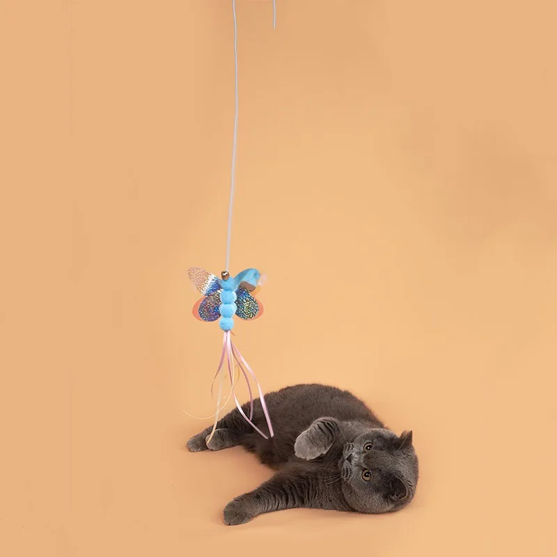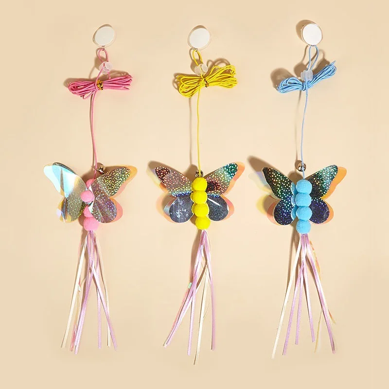 Columpio de mariposa para gatos, juguetes interactivos para colgar en la puerta, juguetes de plumas para gatos, juguete elástico ajustable, productos para mascotas, 2 uds.
