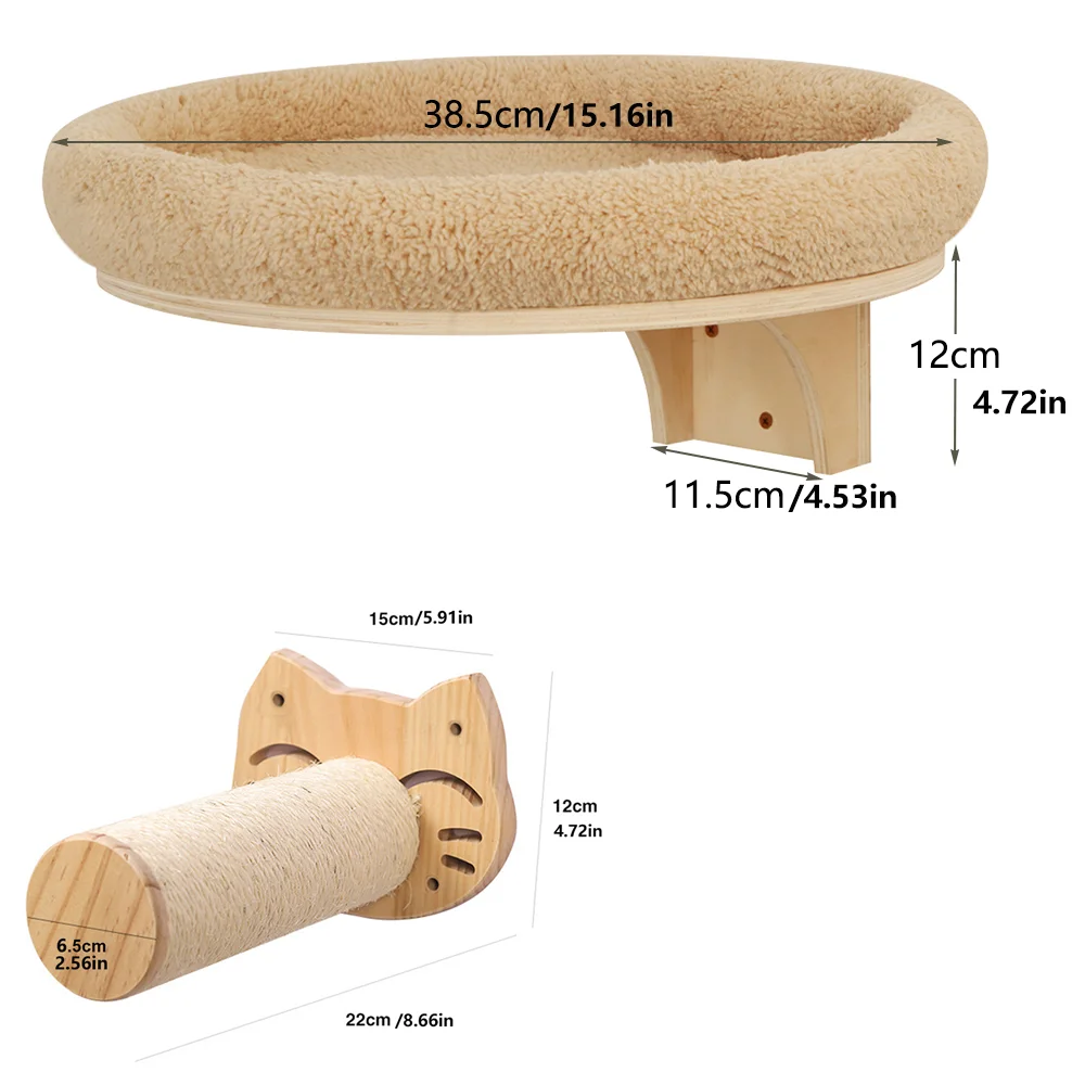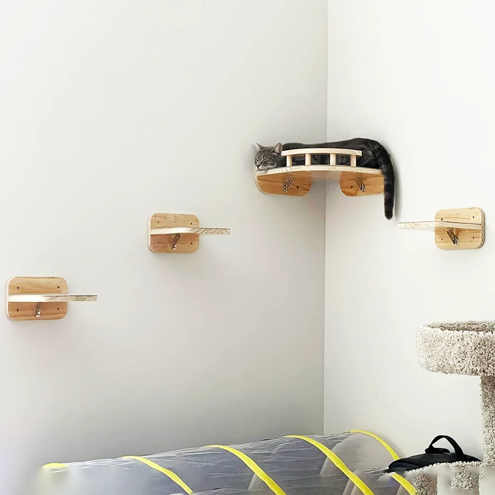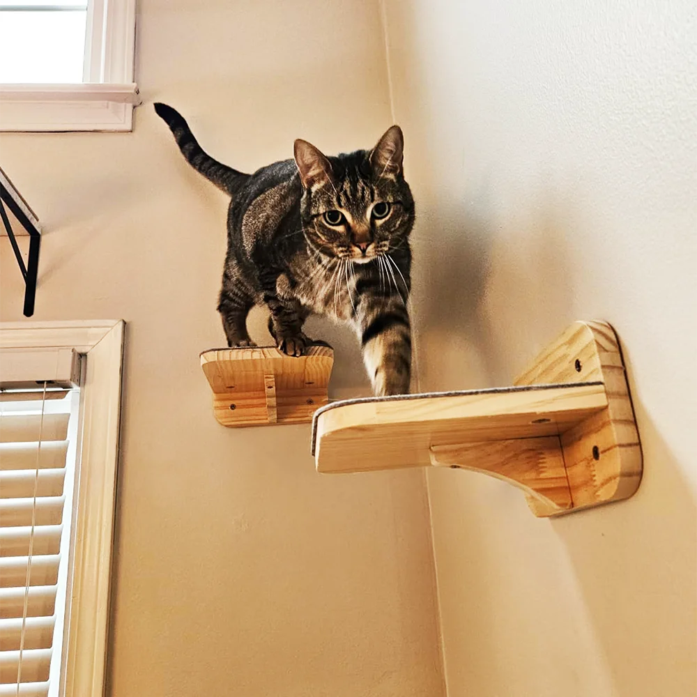 Combinación de pedales para gatos de pared, madera maciza, diseño simple para el hogar, aspecto de esquina, ideal para gatos para escalar y descansar