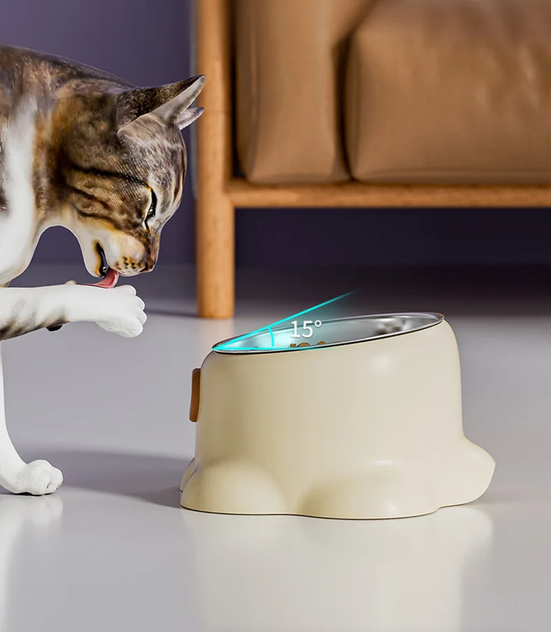 3. La boca del cuenco está inclinada 15 grados para cuidar las vértebras cervicales de la mascota.